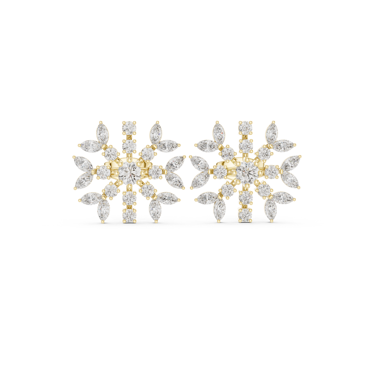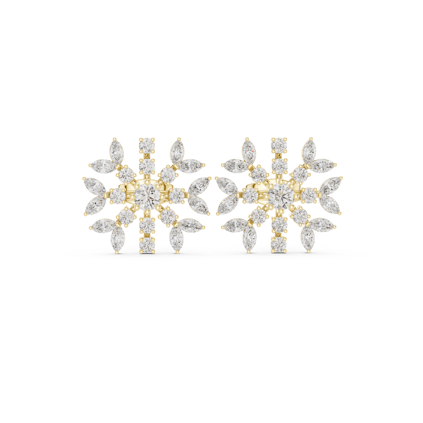 1.15ct Natural Diamond Stud Earrings – Dual Cut Marquise & Round GH/VS - 14KT Gold / Yellow Gold