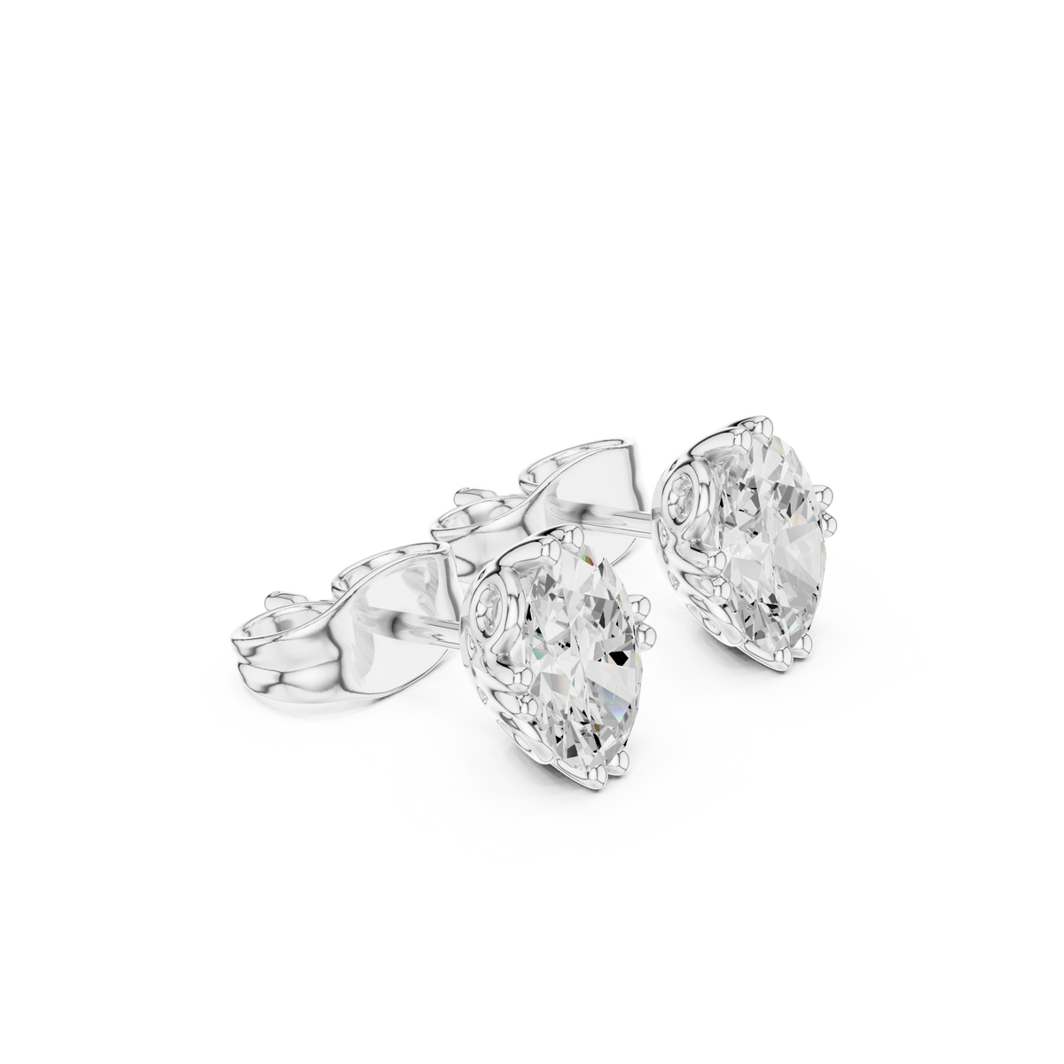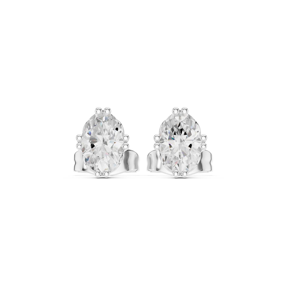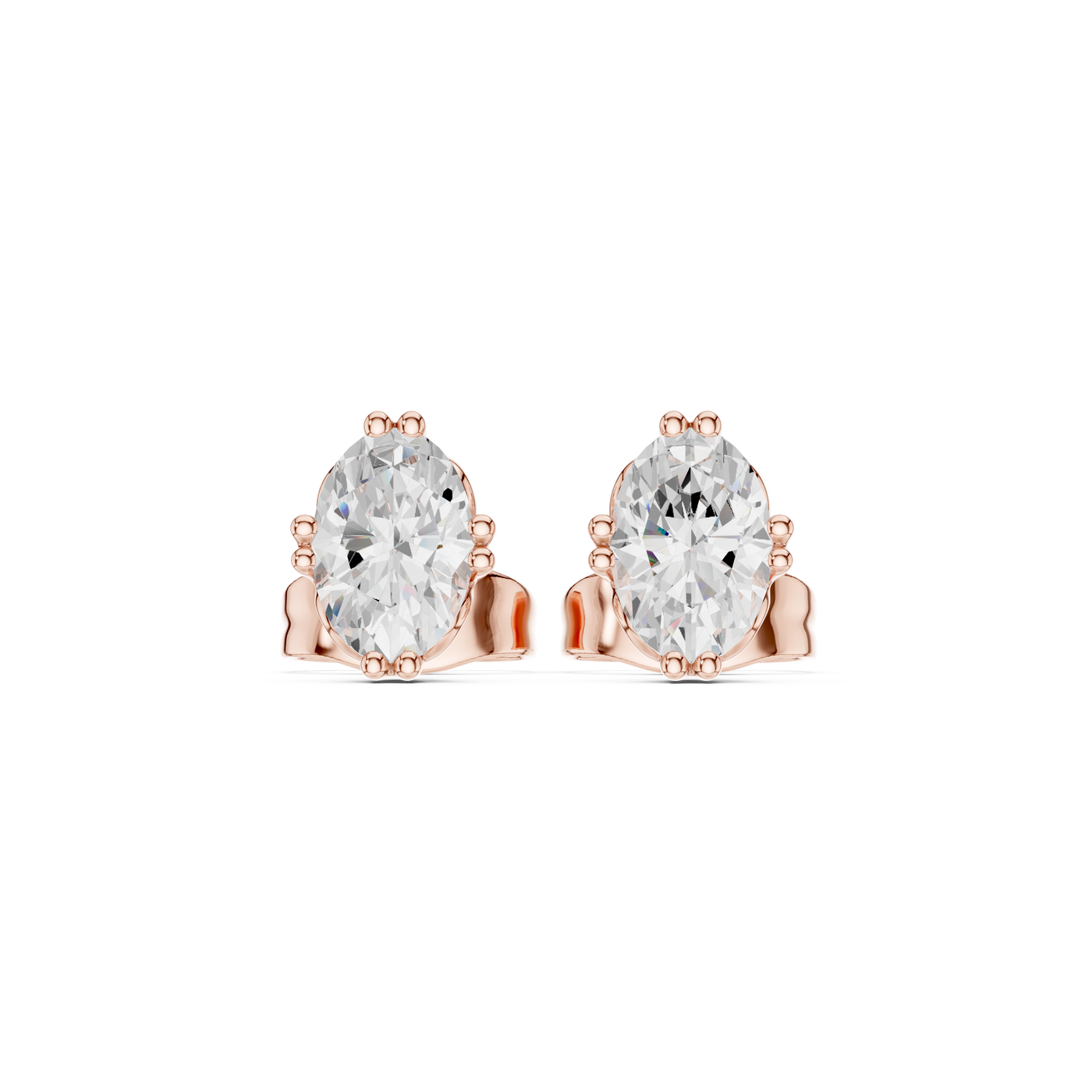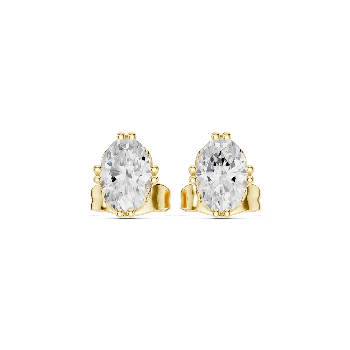 1 Carat Natural Diamond Oval Solitaire Studs – H Color, VS2 Clarity - 14KT Gold / Yellow Gold