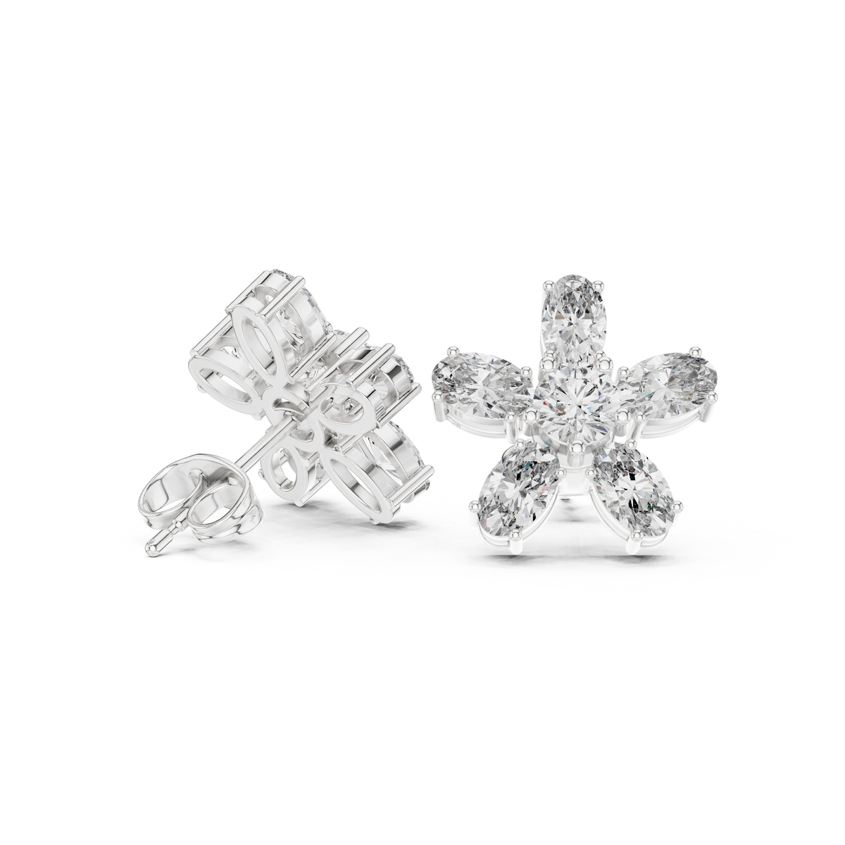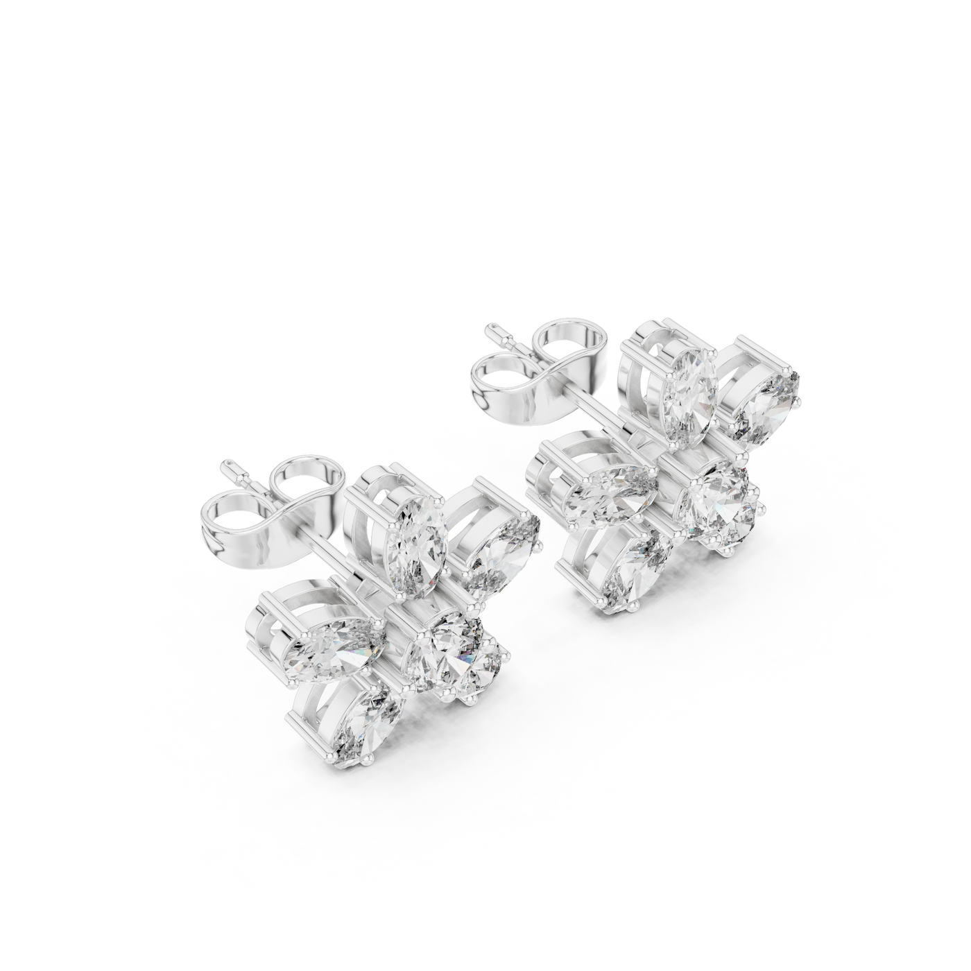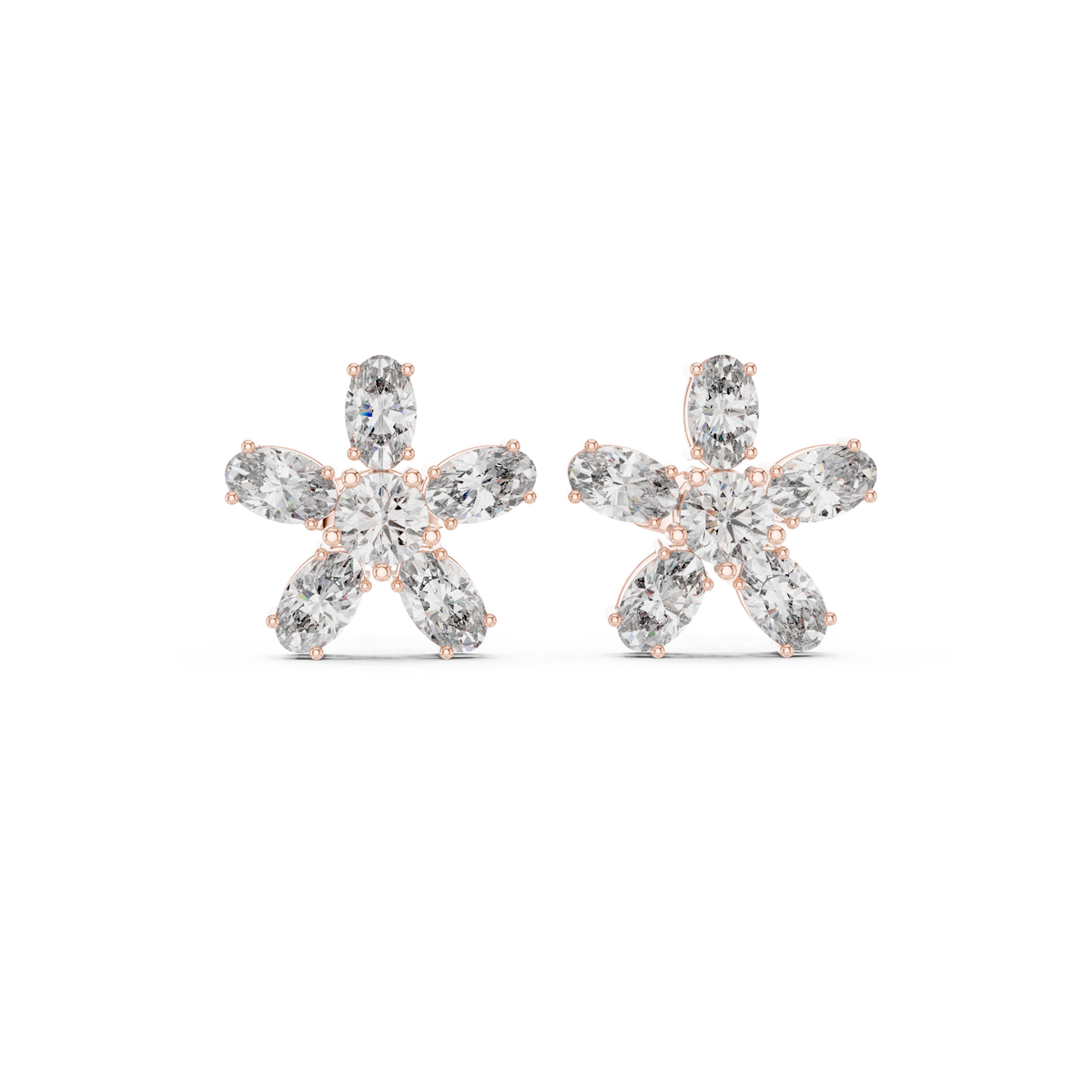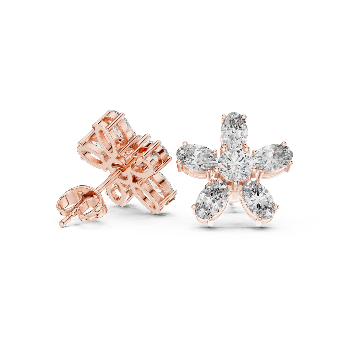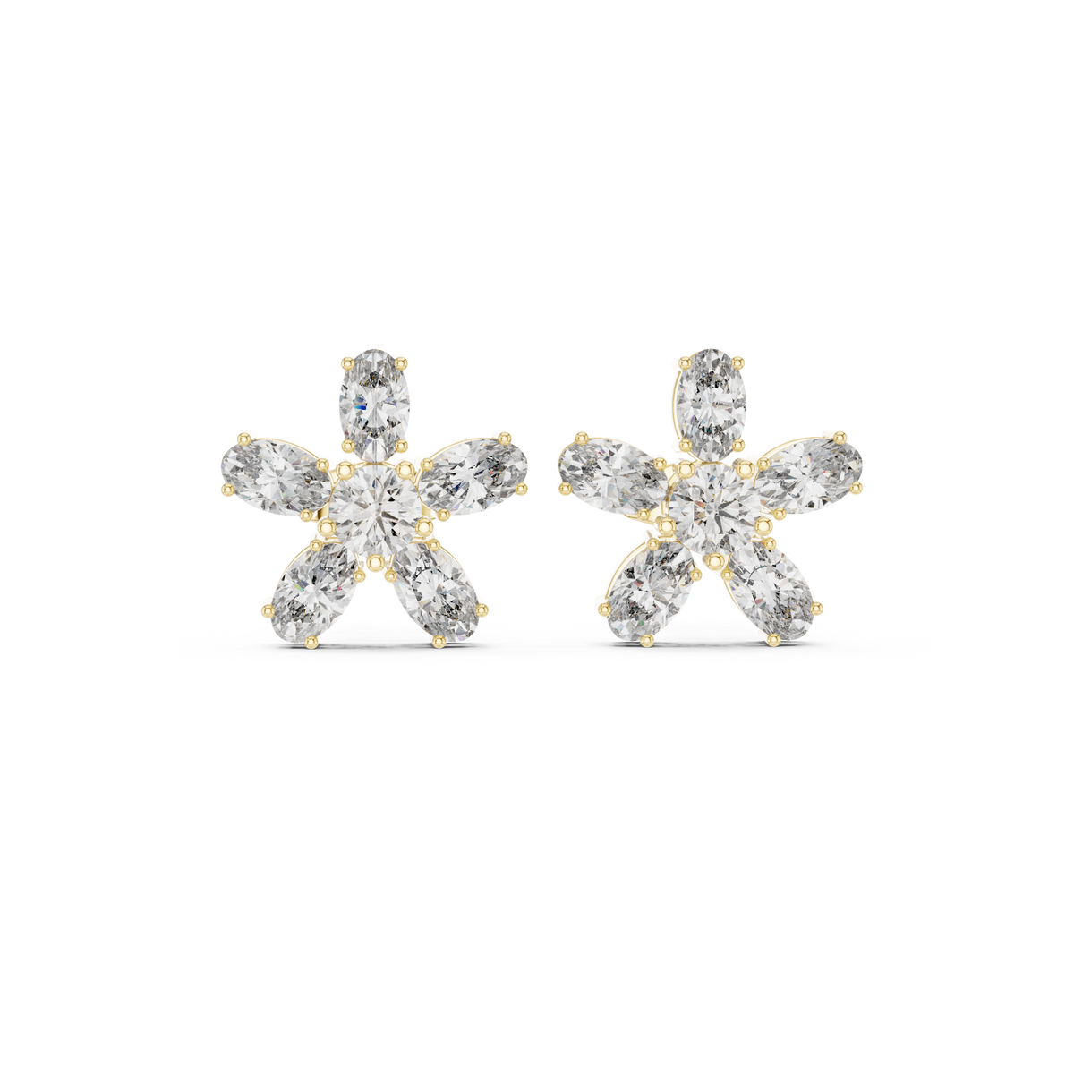 Oval & Round 2.31ct Natural Diamond Stud Earrings – I Color, VS1 Clarity - 14KT Gold / Yellow Gold
