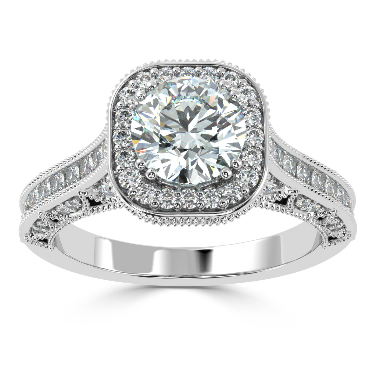 1.63 Carat G Color VS1 Clarity Diamond Studded Natural Diamond Ring - 14KT Gold / 5 / White Gold