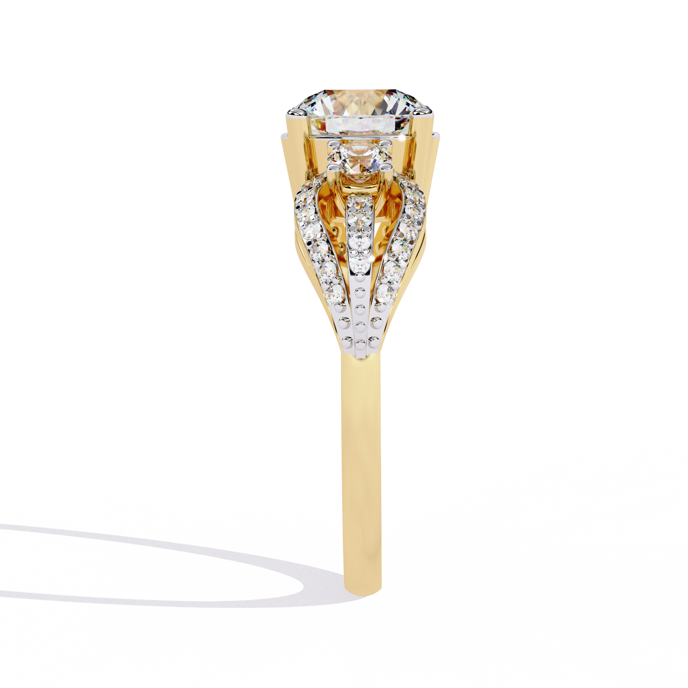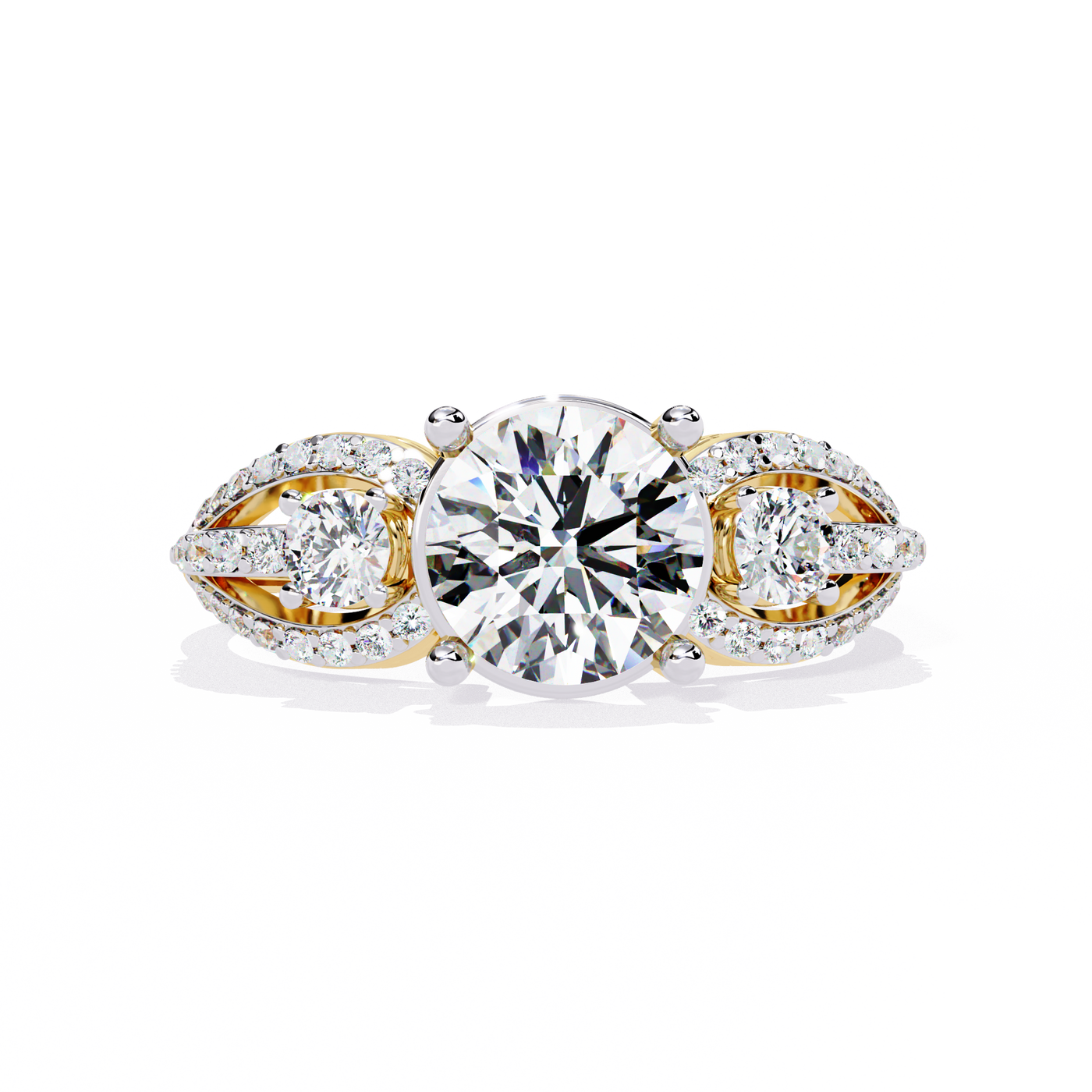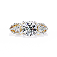 Solitairekart 1.64 ct Three Stone Halo Ring – 14K Yellow Gold - 14KT Gold / 5 / Yellow Gold