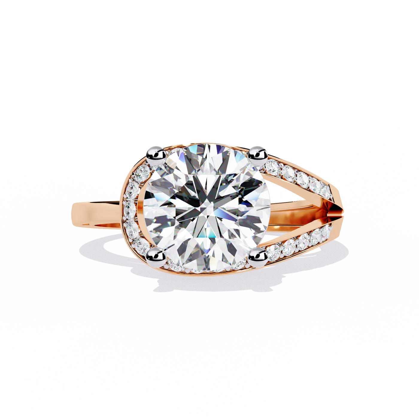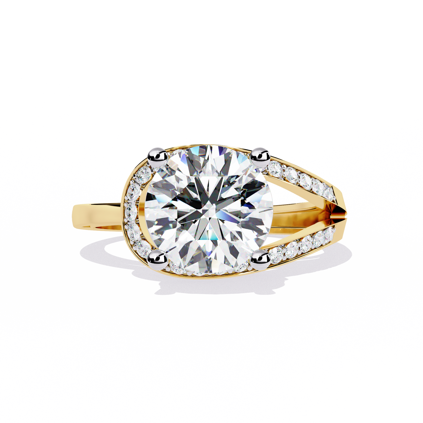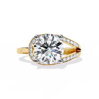 Solitairekart – 2.96 ct Lab Grown Halo Split Shank Ring – 14K Yellow Gold - 14KT Gold / 5 / Yellow Gold