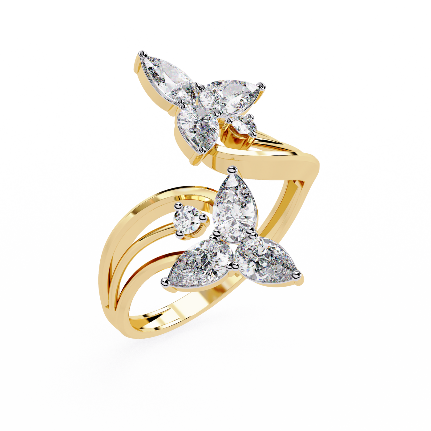 Solitairekart – 0.99ct Lab Grown Diamond Double Butterfly Ring in 14K Yellow Gold - 14KT Gold / 5 / Yellow Gold