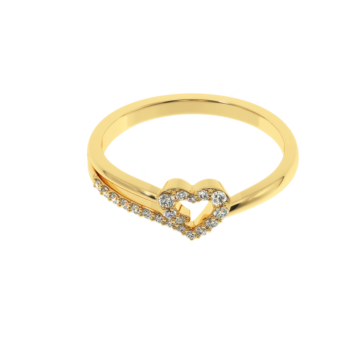 Solitairekart-0.15 CT Lab Grown Diamond Heart Outline Gold Ring - 14KT Gold / 5 / Yellow Gold
