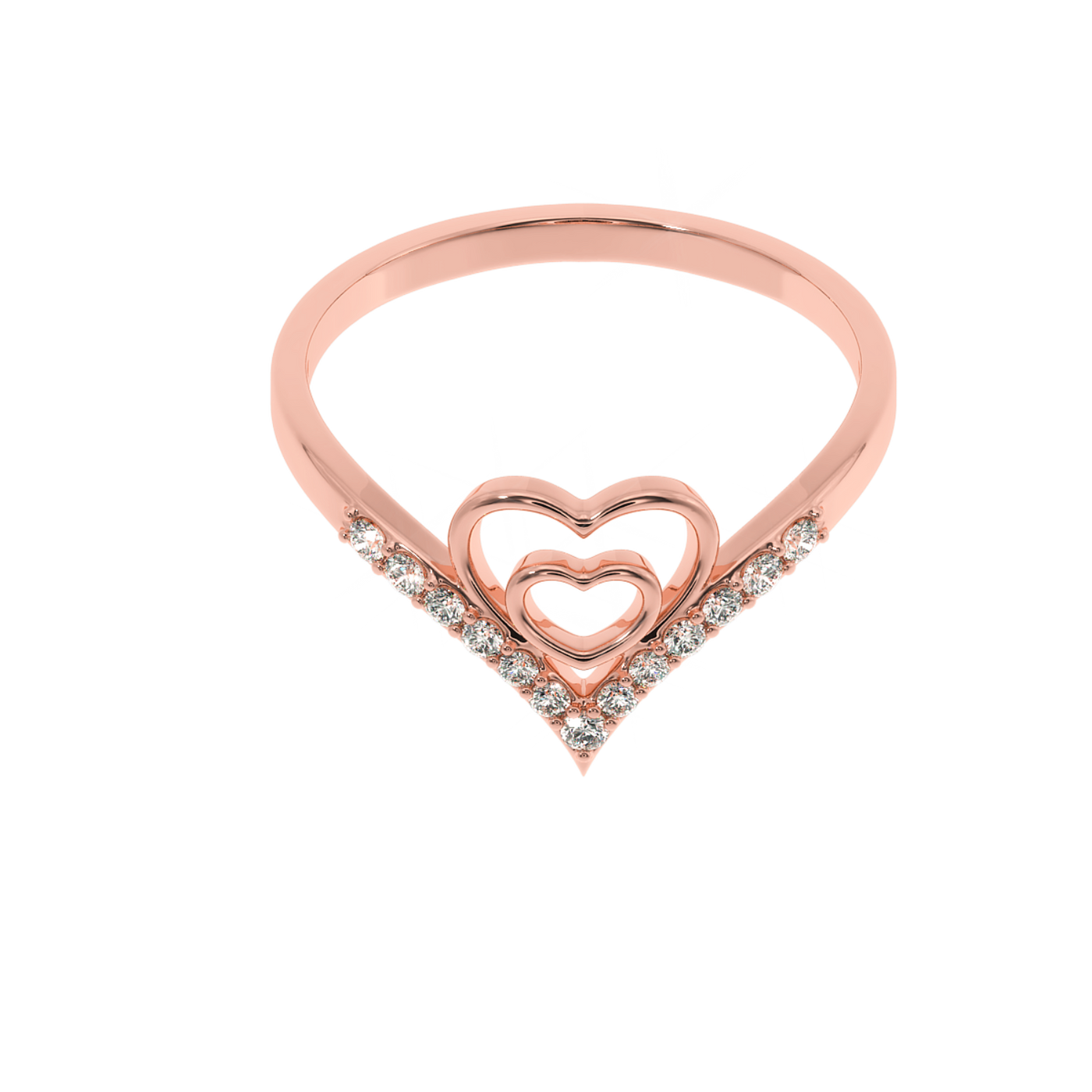 Solitairekart – 0.16 CT Double Heart Lab Diamond Ring | 14K Yellow Gold - 14KT Gold / 5 / Yellow Gold