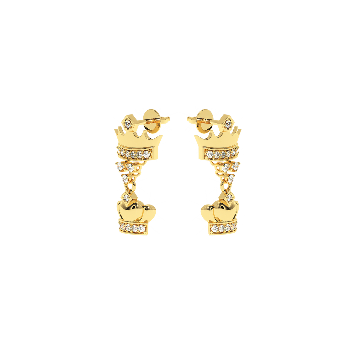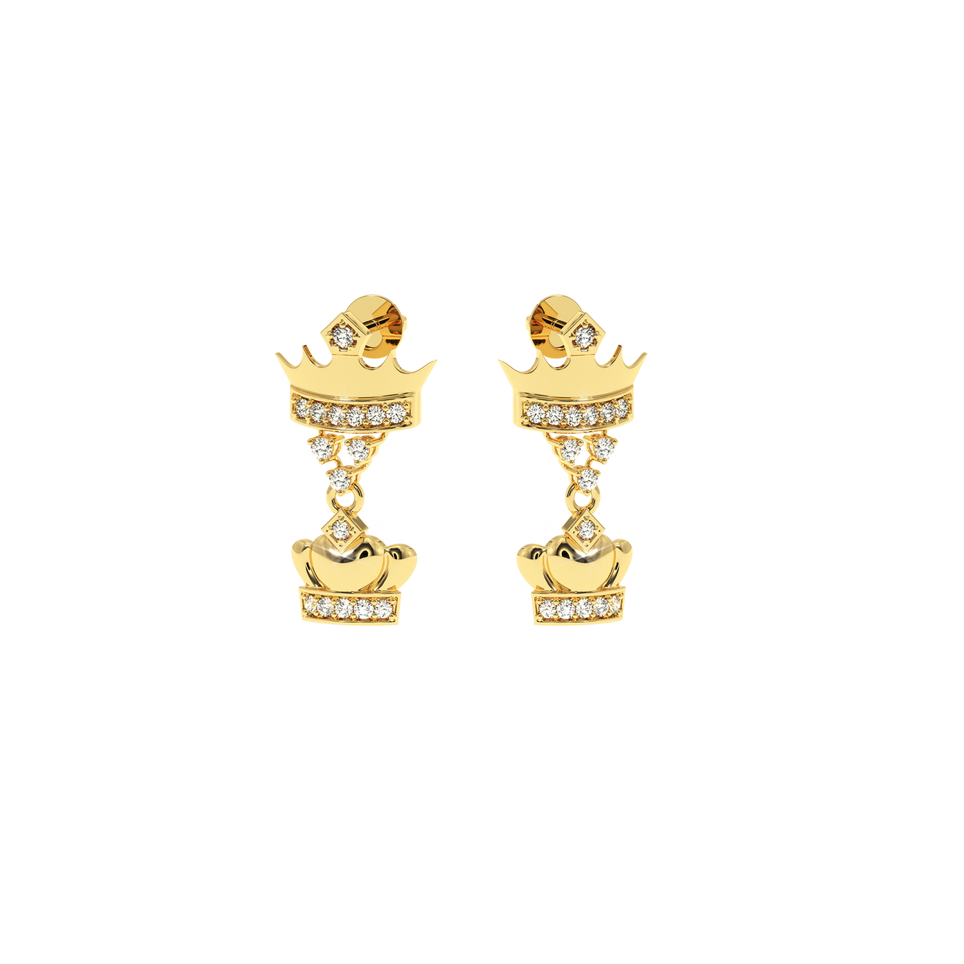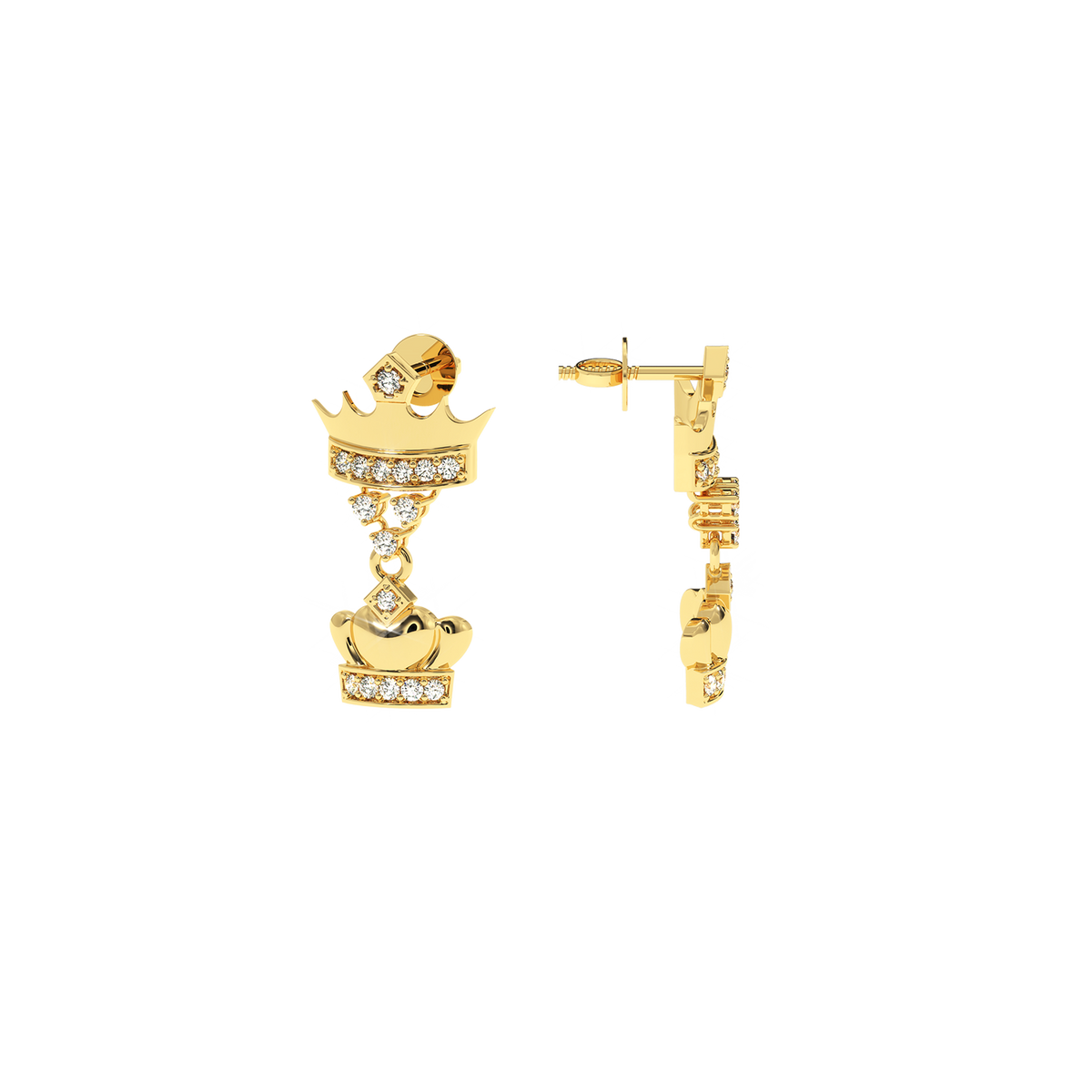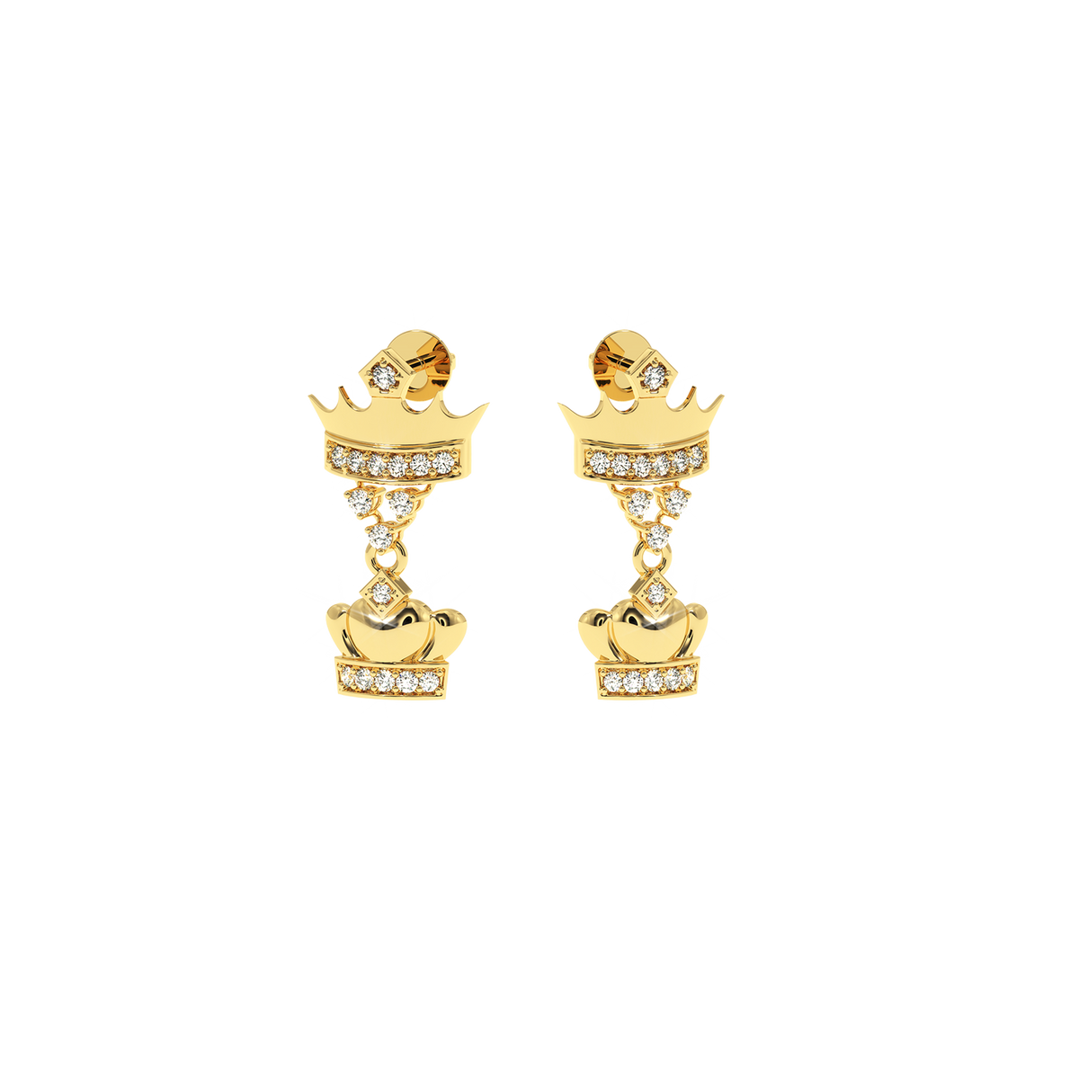 0.18 CT Natural Diamond Double Crown Earrings | Luxurious Dangle Design - 14KT Gold / Yellow Gold