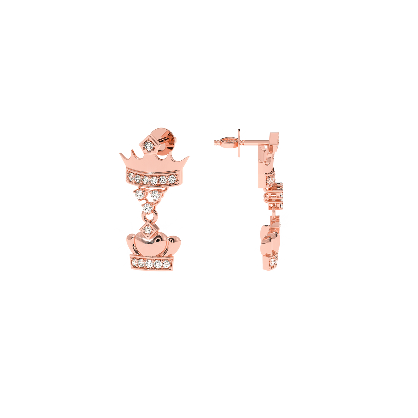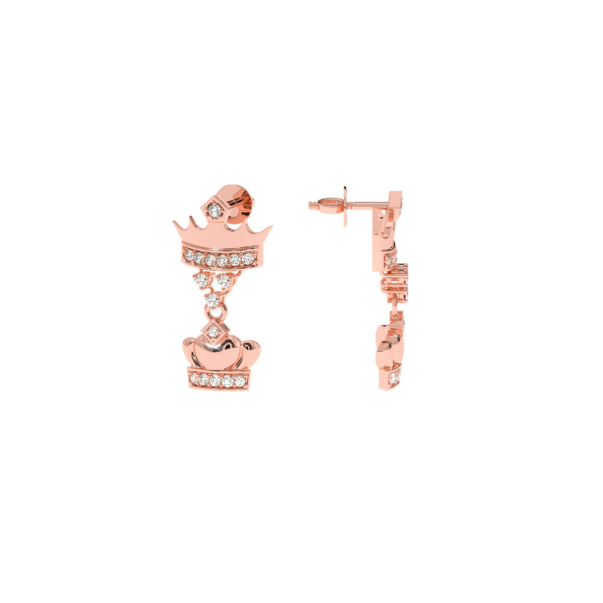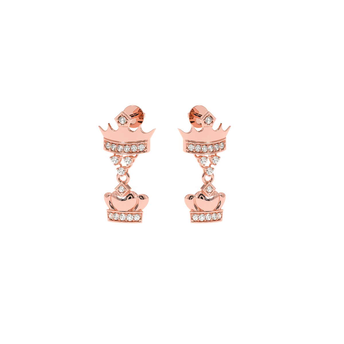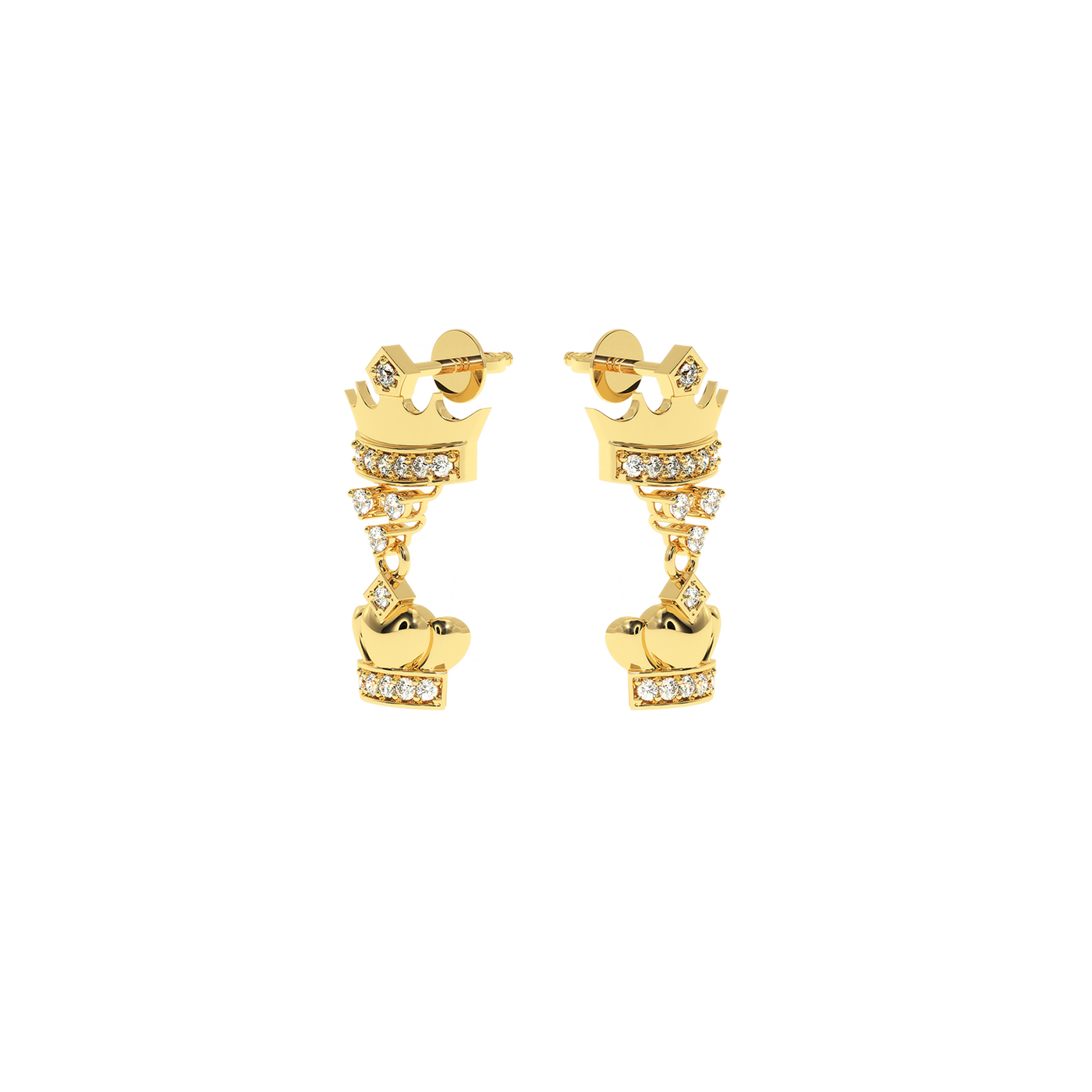 0.18 CT Natural Diamond Double Crown Earrings | Luxurious Dangle Design - 14KT Gold / Yellow Gold