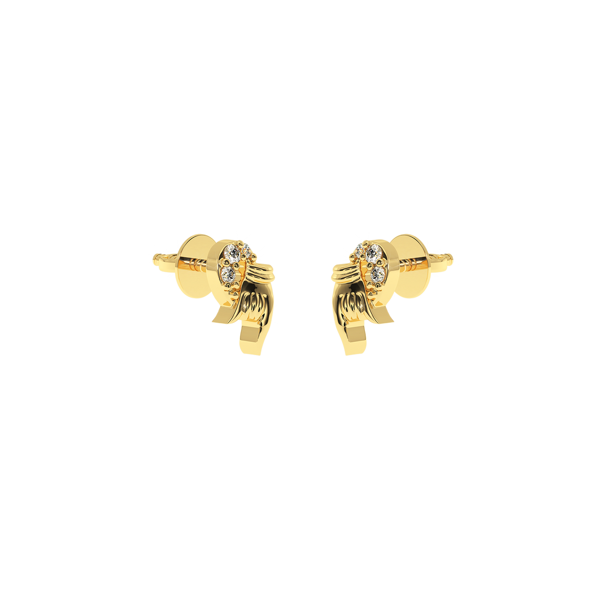 Hand Gesture Stud Earrings - 0.09 Ct Natural Diamond - 14KT Gold / Yellow Gold