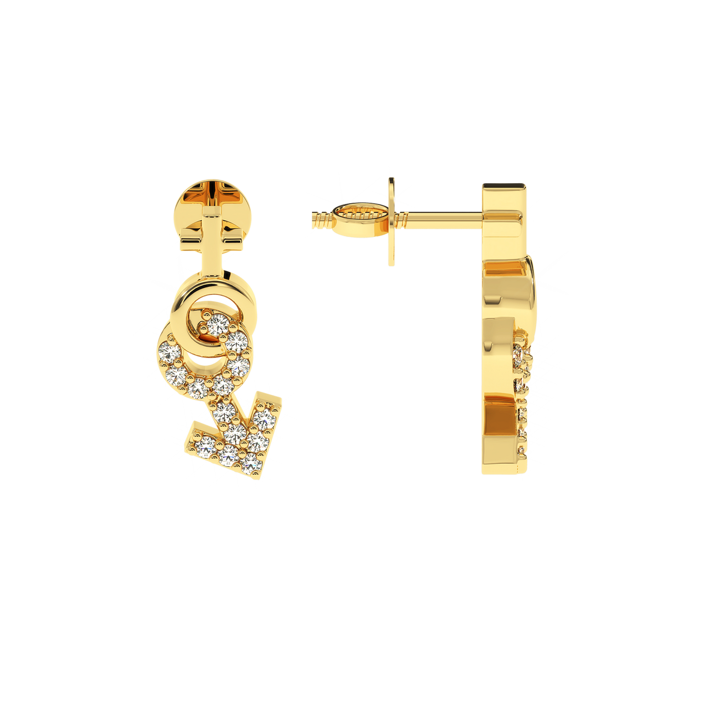 Express Yourself with Gender Symbol Diamond Earrings – 0.14 CT - 14KT Gold / Yellow Gold