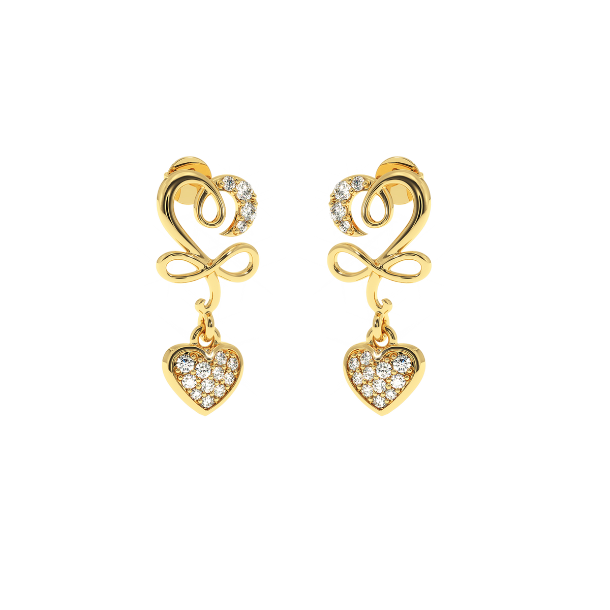 Symbol of Love: Double Heart Infinity 0.19 Carat Diamond Earrings - 14KT Gold / Yellow Gold