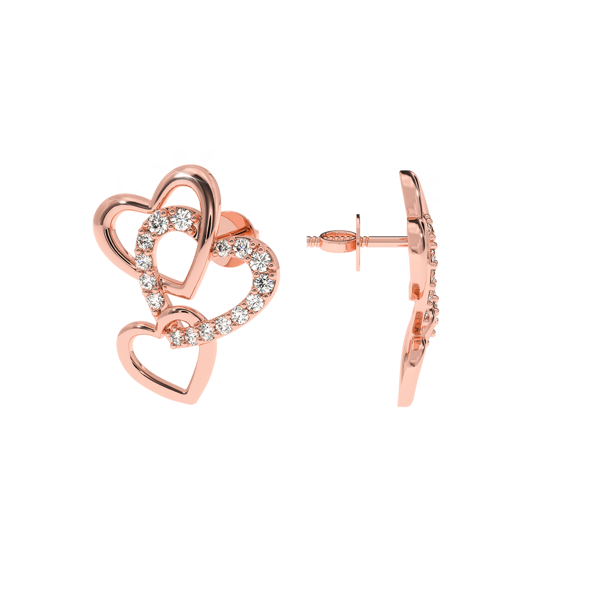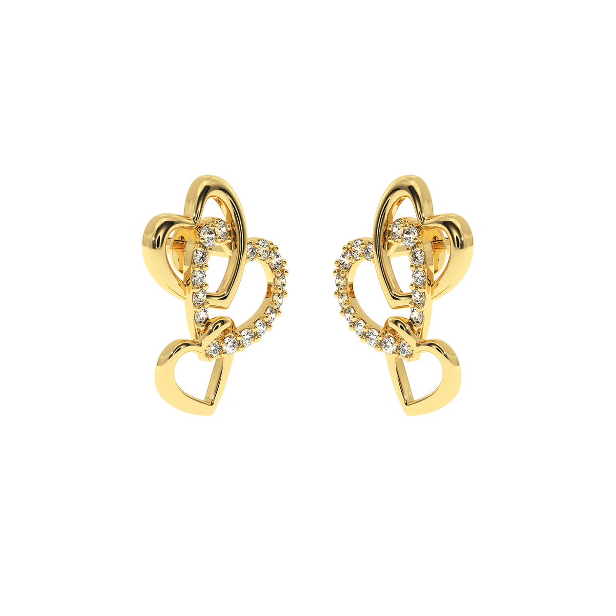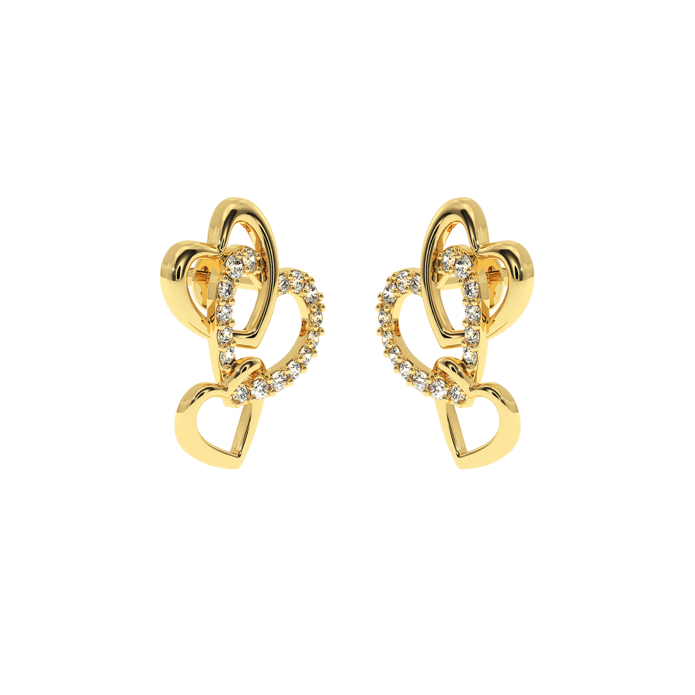 Triple Heart Diamond Stud Earrings | 0.22 CT | Symbol of Love & Elegance - 14KT Gold / Yellow Gold