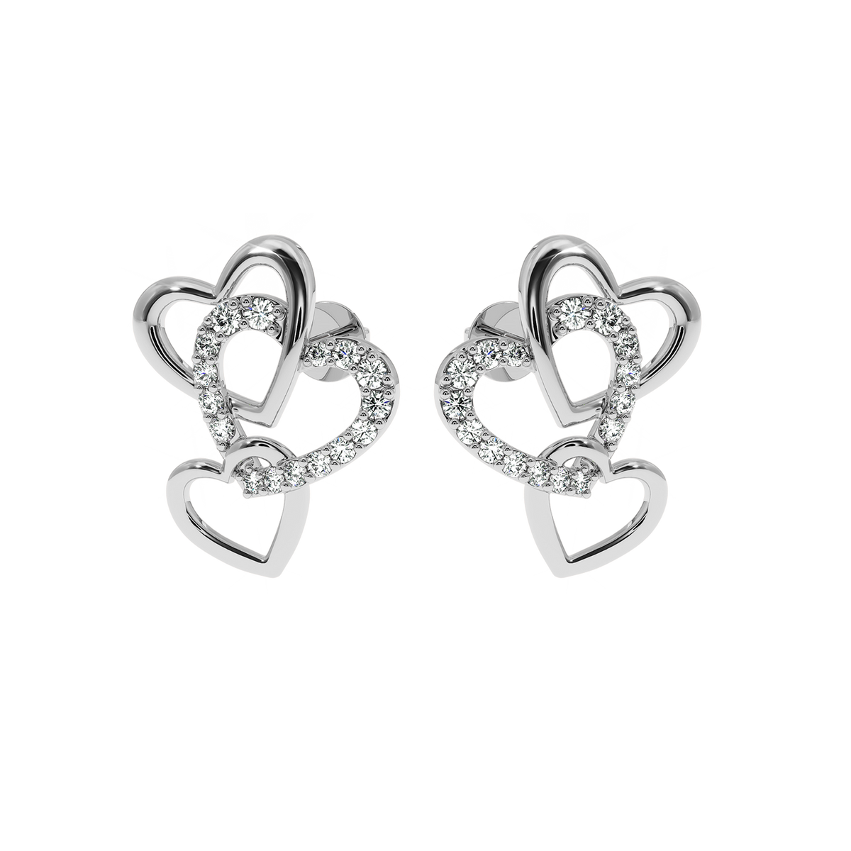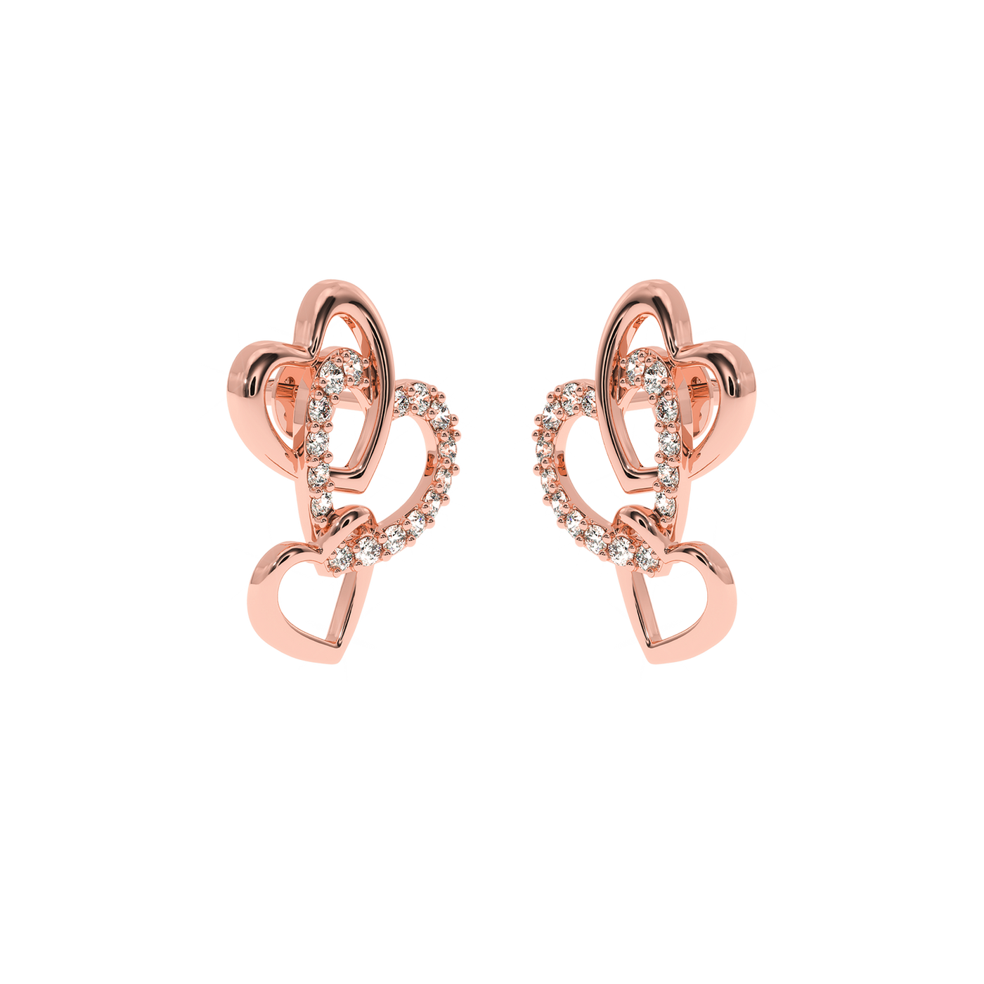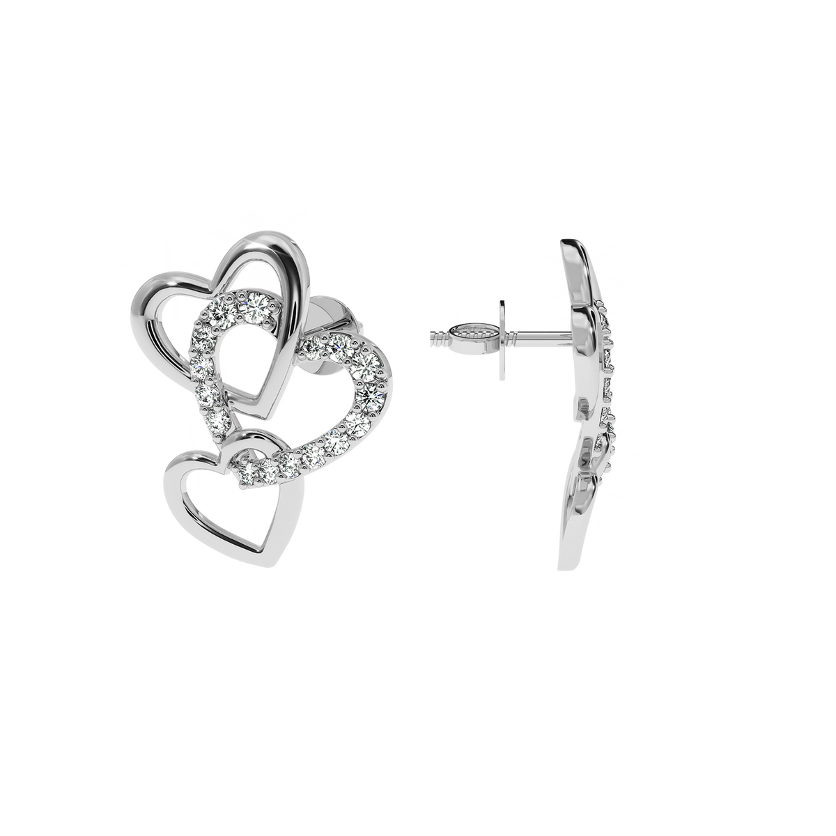 Triple Heart Diamond Stud Earrings | 0.22 CT | Symbol of Love & Elegance - 14KT Gold / Yellow Gold