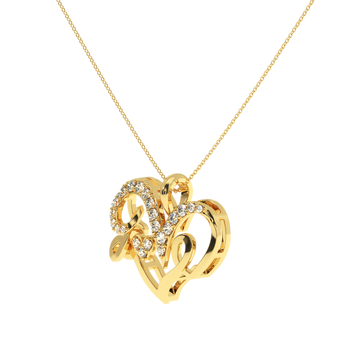 Solitairekart 0.24 Carat Diamond-Accented Love Script Heart Pendant Natural Diamond - 14KT Gold / Yellow Gold