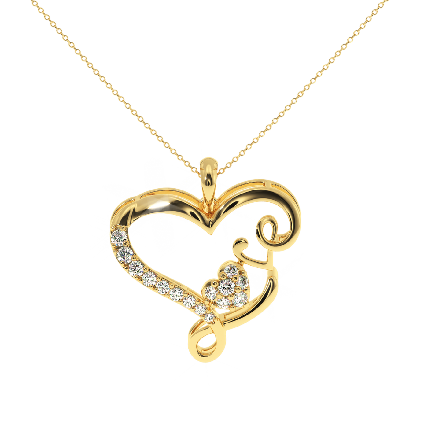 Solitairekart Love Pendant - 0.21 Carat Natural Diamond HI Color, VS-SI Clarity Timeless Romance - 14KT Gold / Yellow Gold