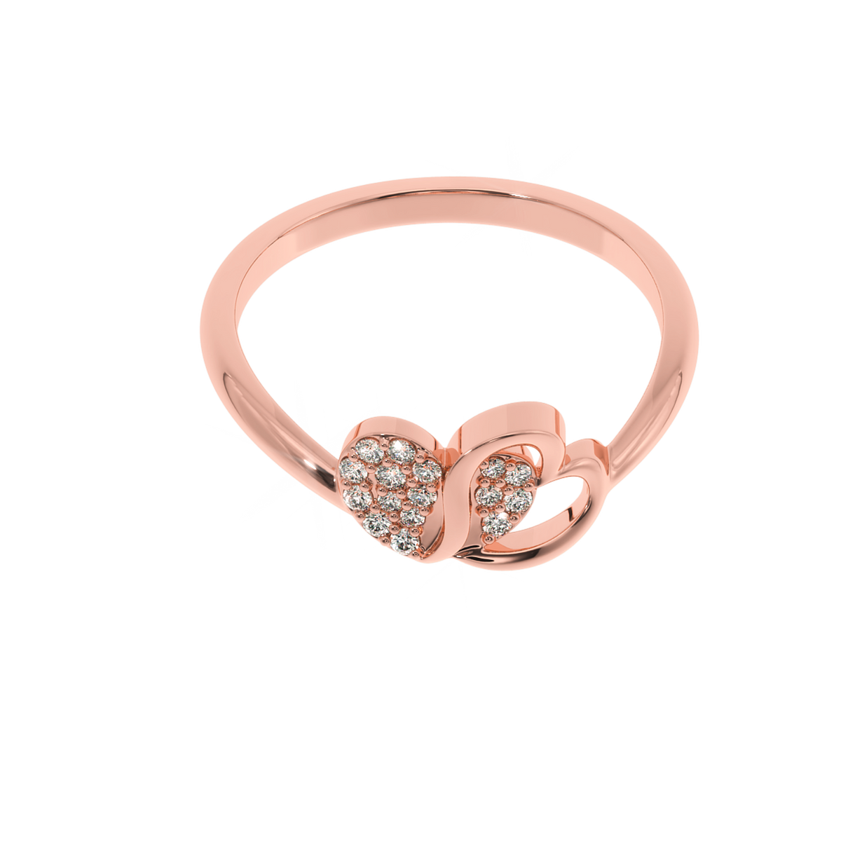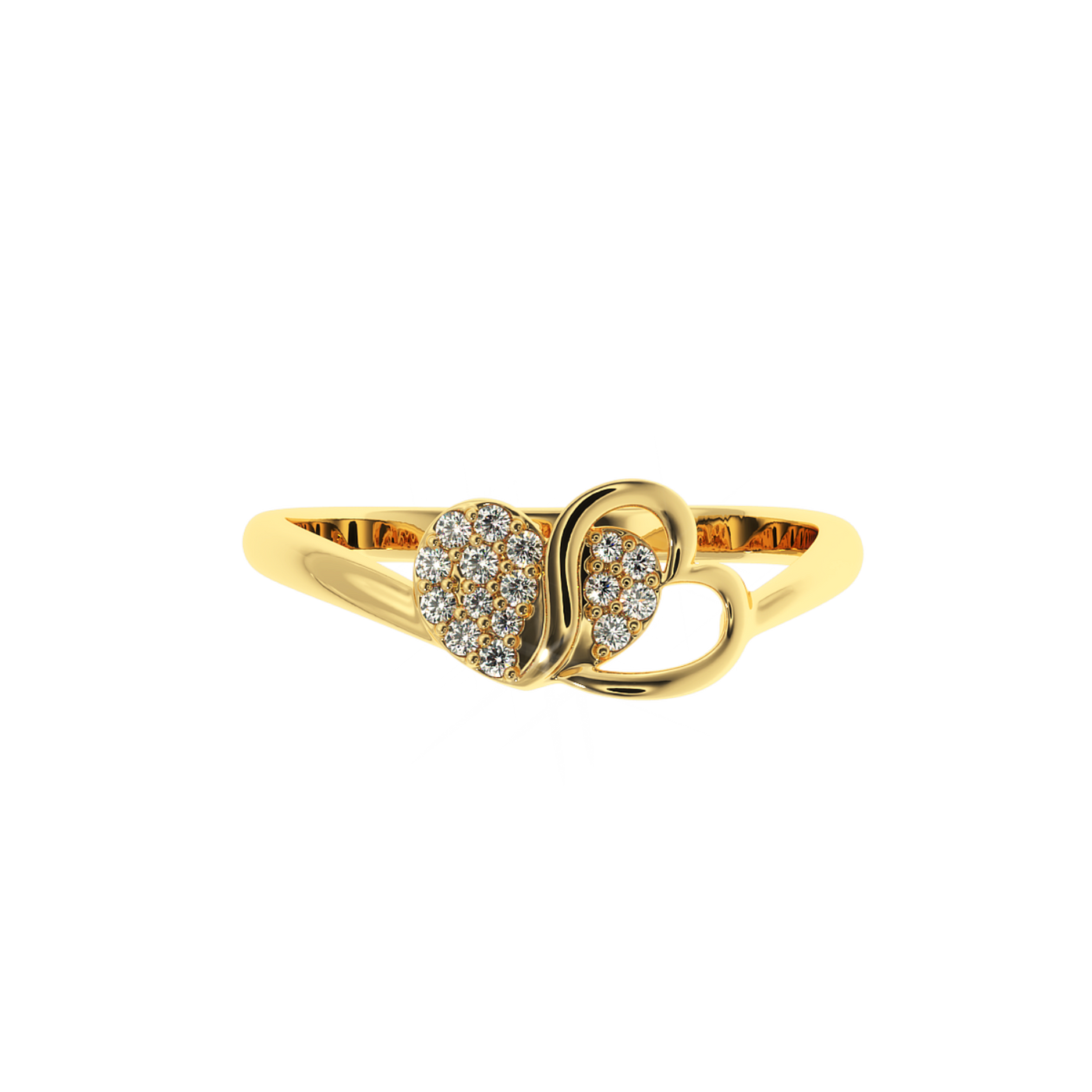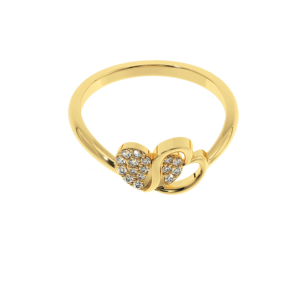 Solitairekart Eternal Love Duo Heart Natural Diamond Ring-0.12ct - 14KT Gold / 5 / Yellow Gold