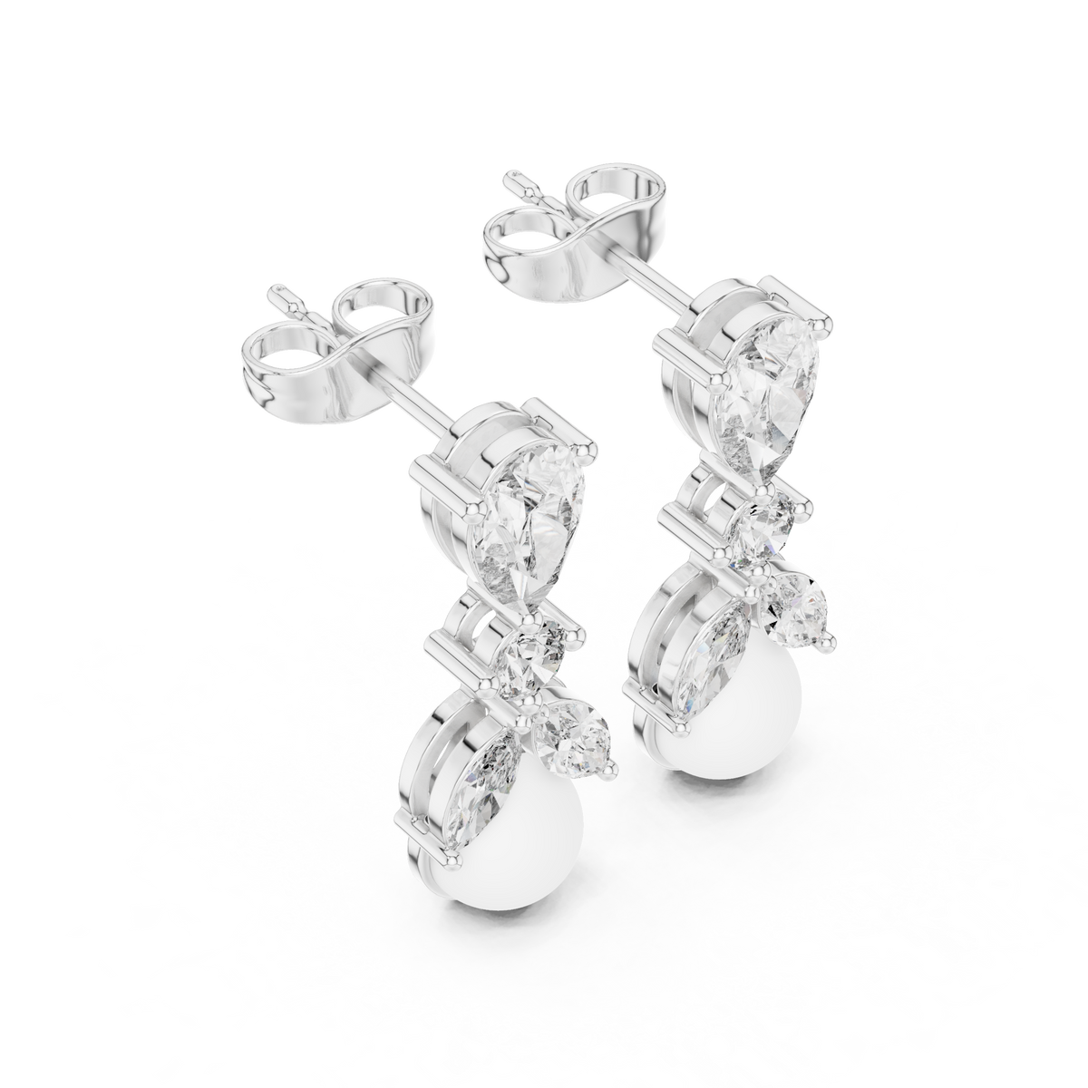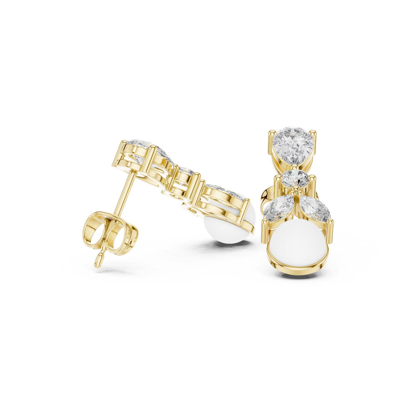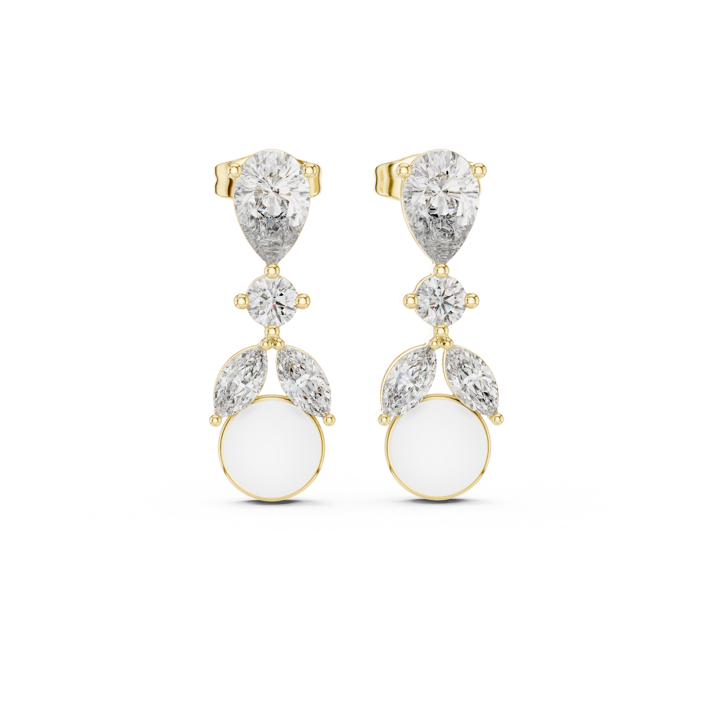1.63 Carat Pearl & Multi-Shape Natural Diamond Drop Earrings – J/VS2 - 14KT Gold / Yellow Gold