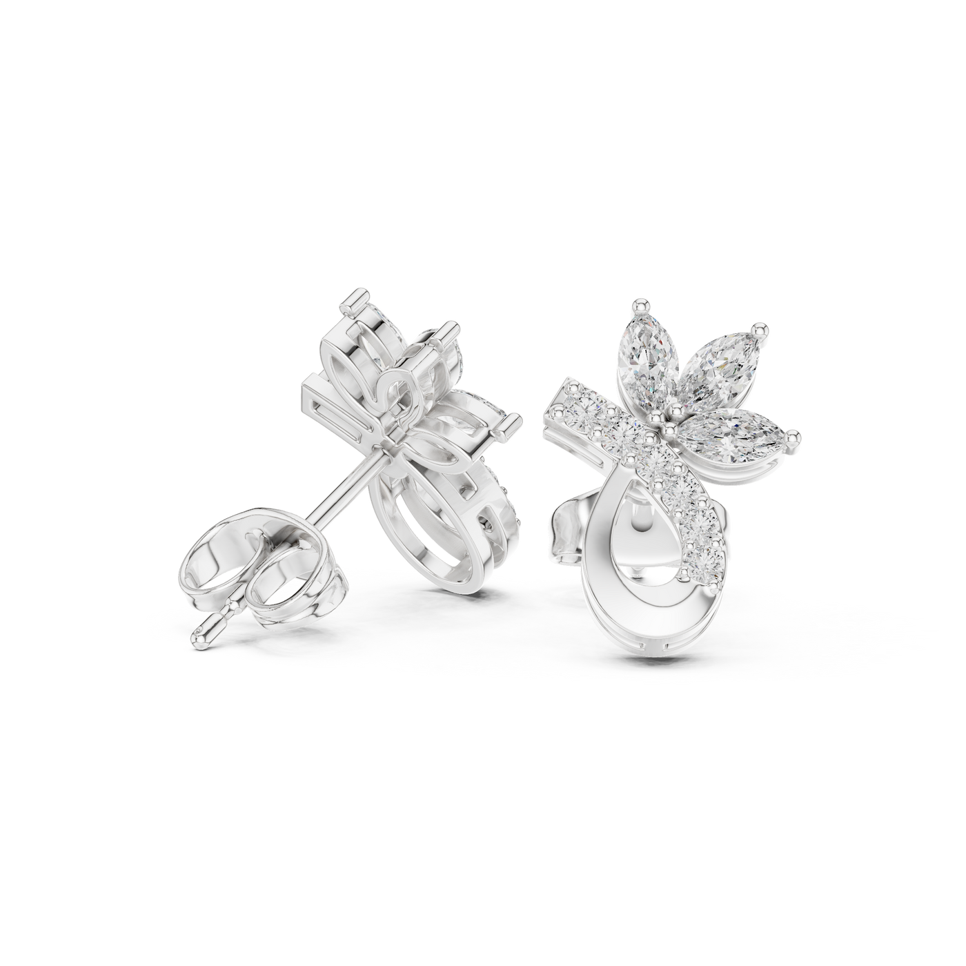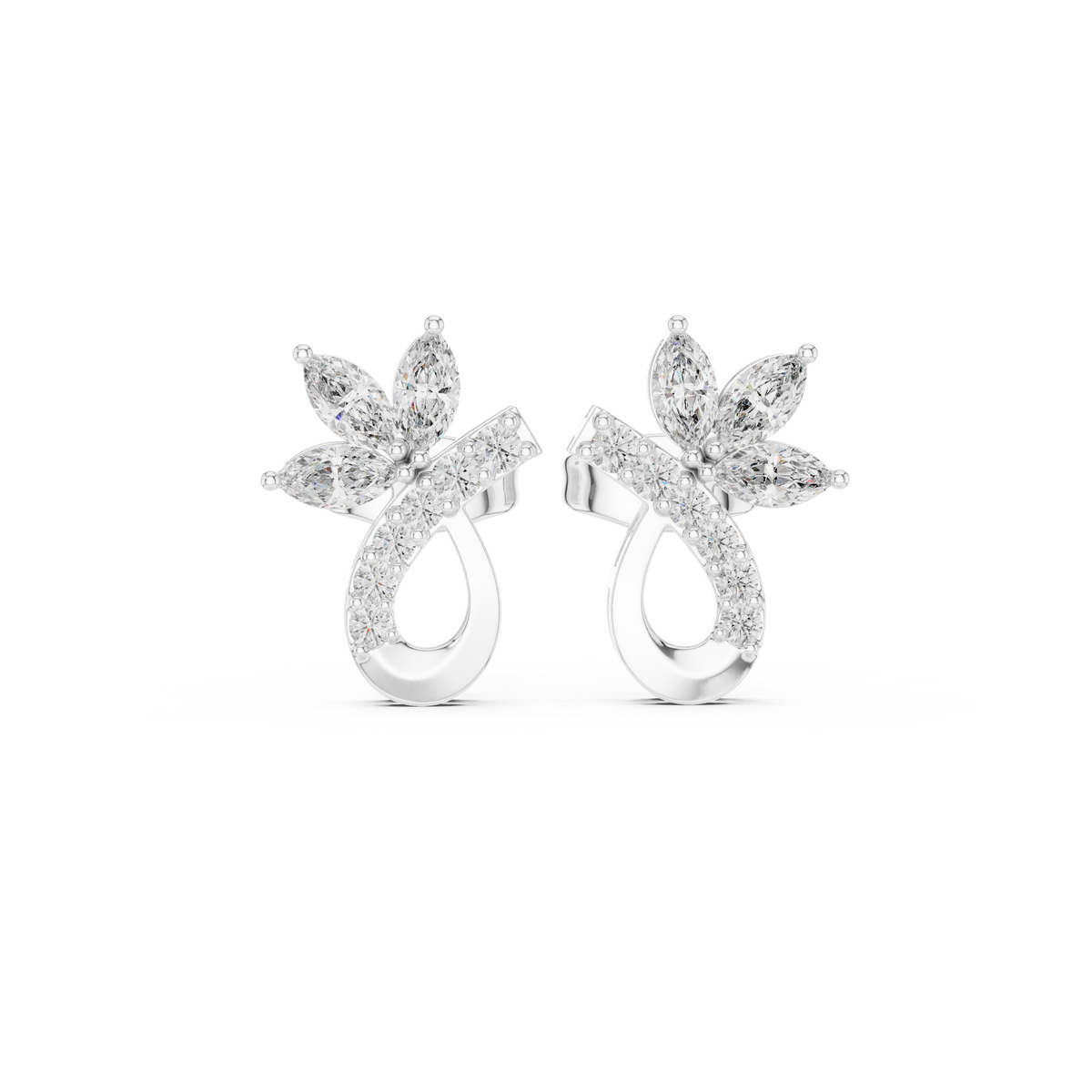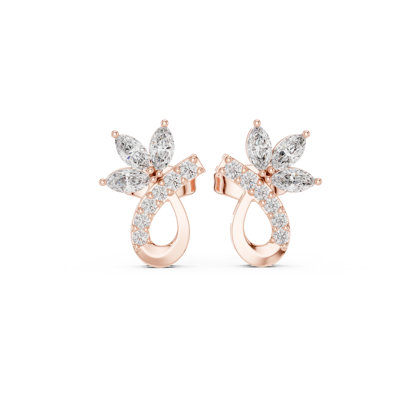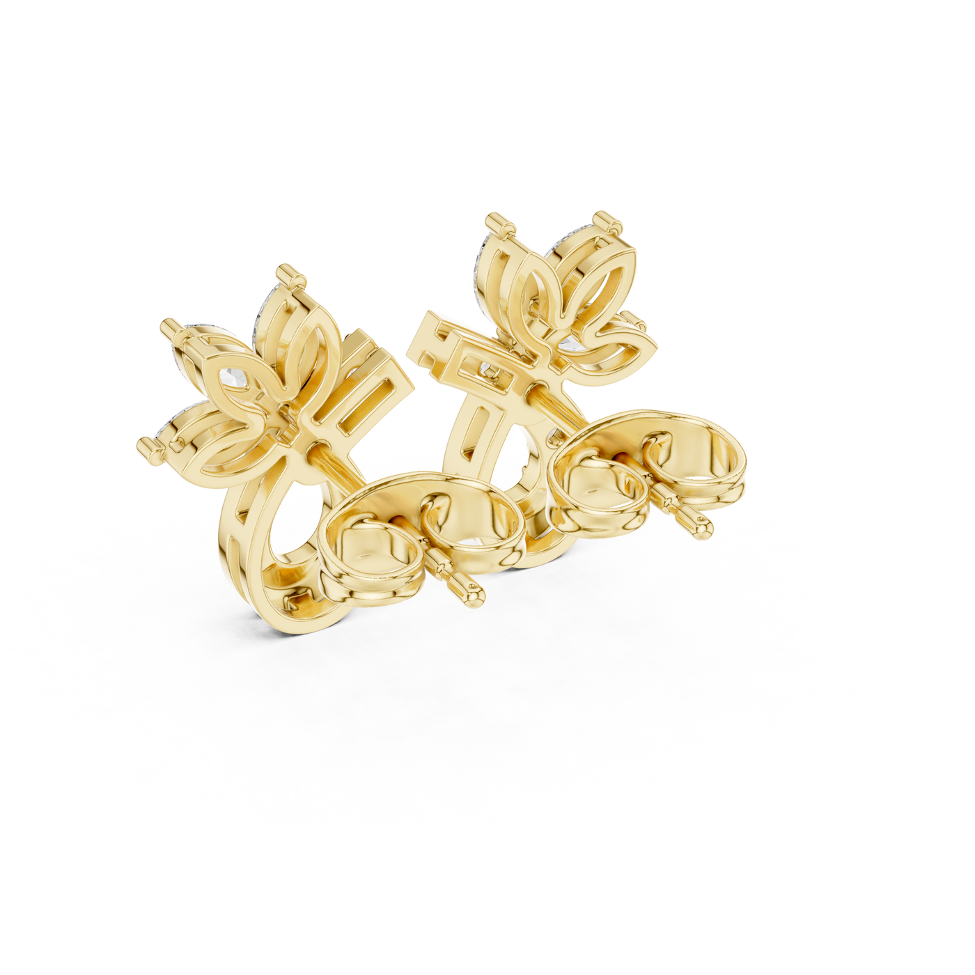 Marquise & Round 0.47ct Natural Diamond Stud Earrings – GH Color, VS Clarity - 14KT Gold / Yellow Gold