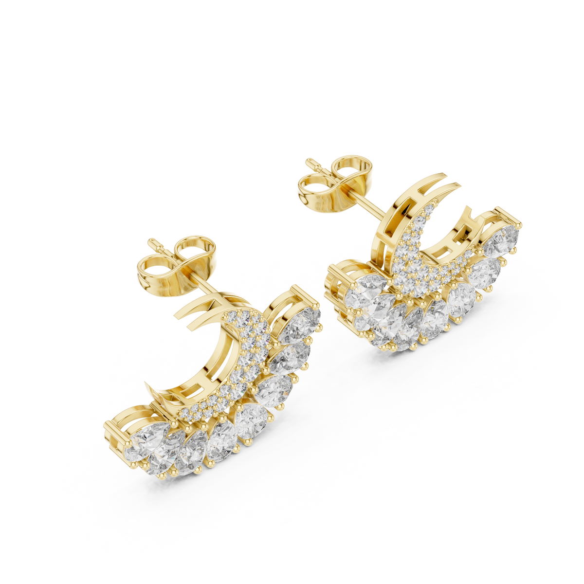 2.644ct EF/VS Round & Pear Natural Diamond Jacket Earrings – Ultimate Brilliance - 14KT Gold / Yellow Gold