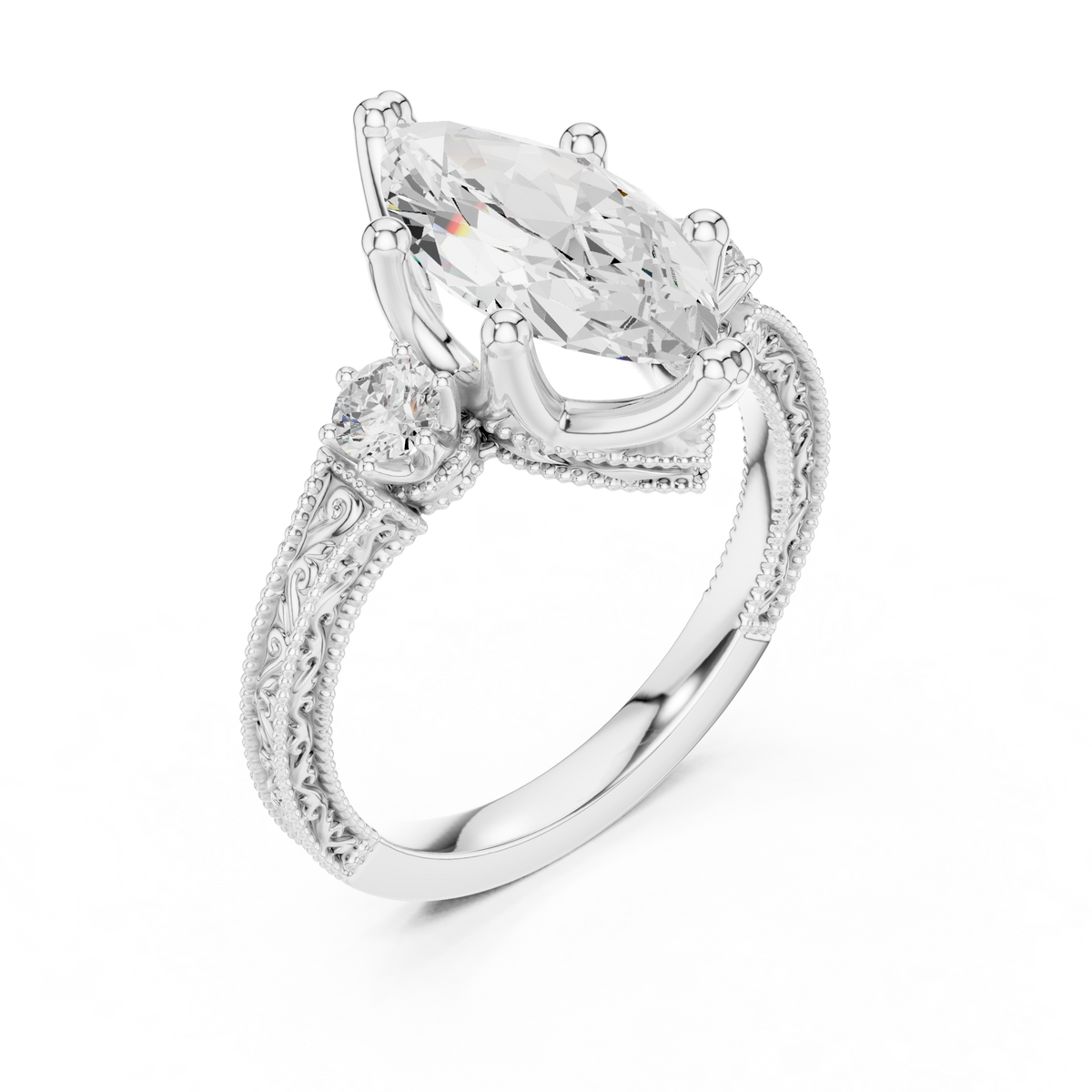 2.80ct H/VS1 Marquise & Round Natural Diamond Three-Stone Ring - 14KT Gold / 5 / Yellow Gold