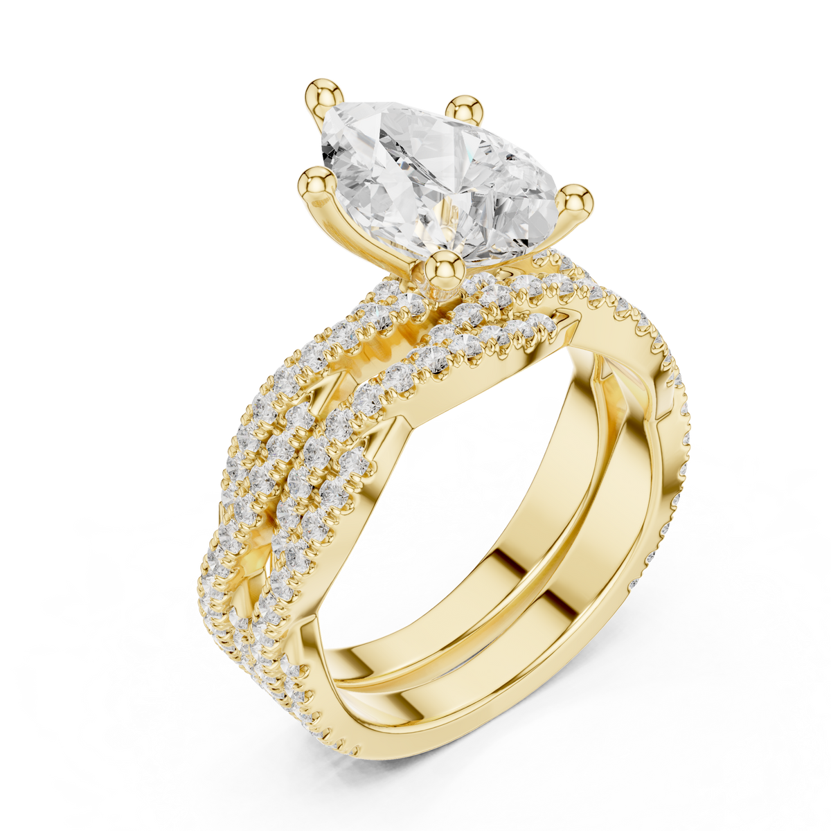 3.23 Carat Pear & Round Cut Natural Diamond Engagement Ring – I Color VS1 Clarity - 14KT Gold / 5 / Yellow Gold