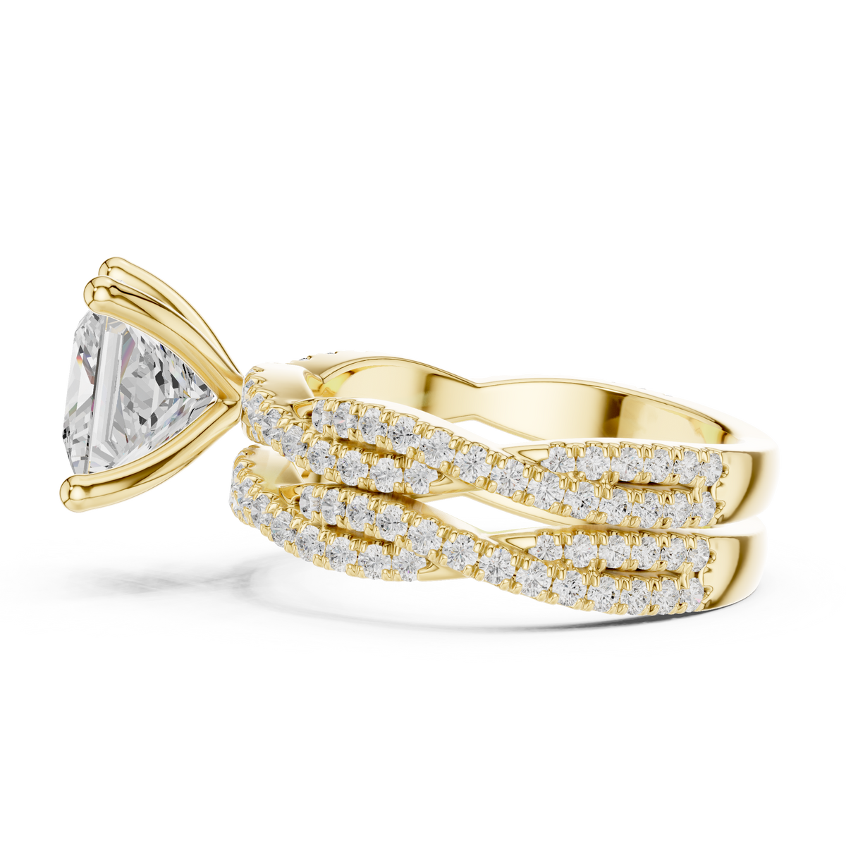 3.23 Carat Princess Cut Natural Diamond Engagement Ring – H Color VS1 Clarity - 14KT Gold / 5 / Yellow Gold