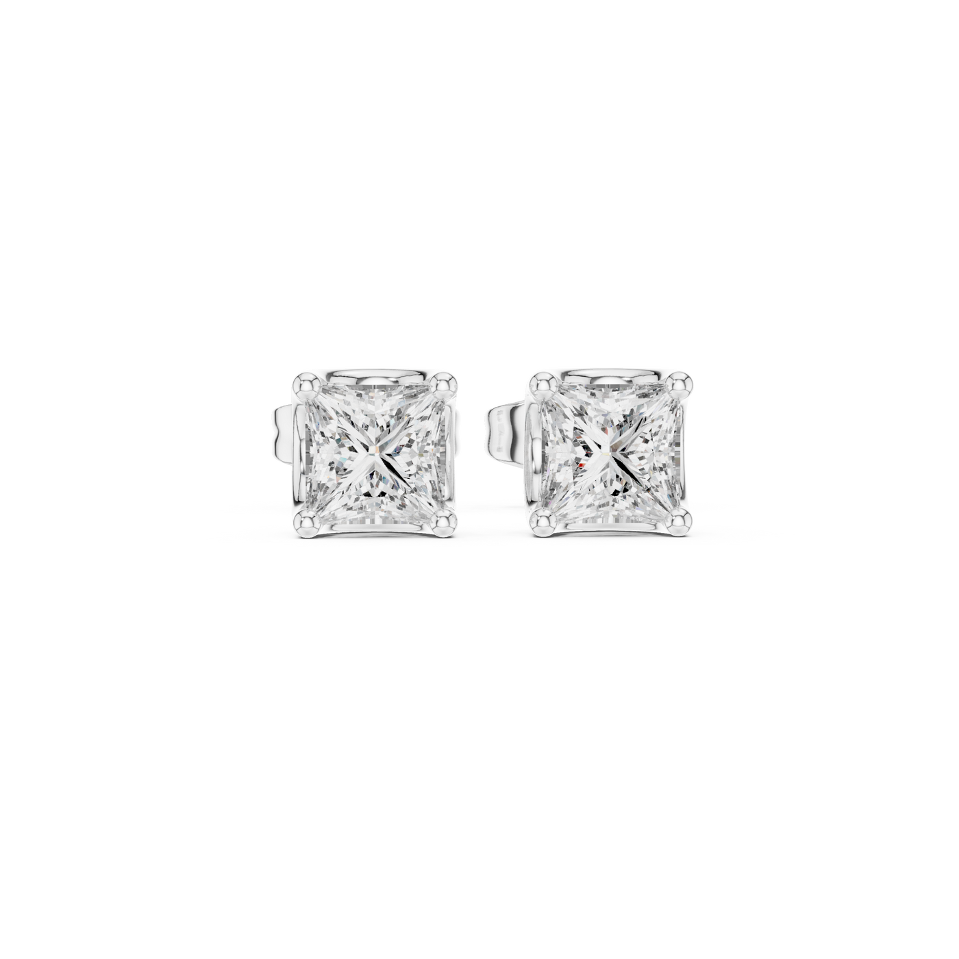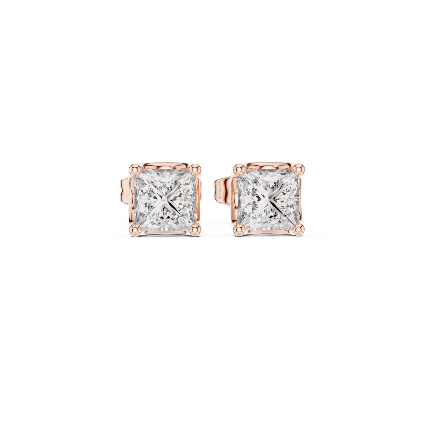 0.43ct Princess Cut Natural Diamond Stud Earrings – H/VS2 Brilliance - 14KT Gold / Yellow Gold