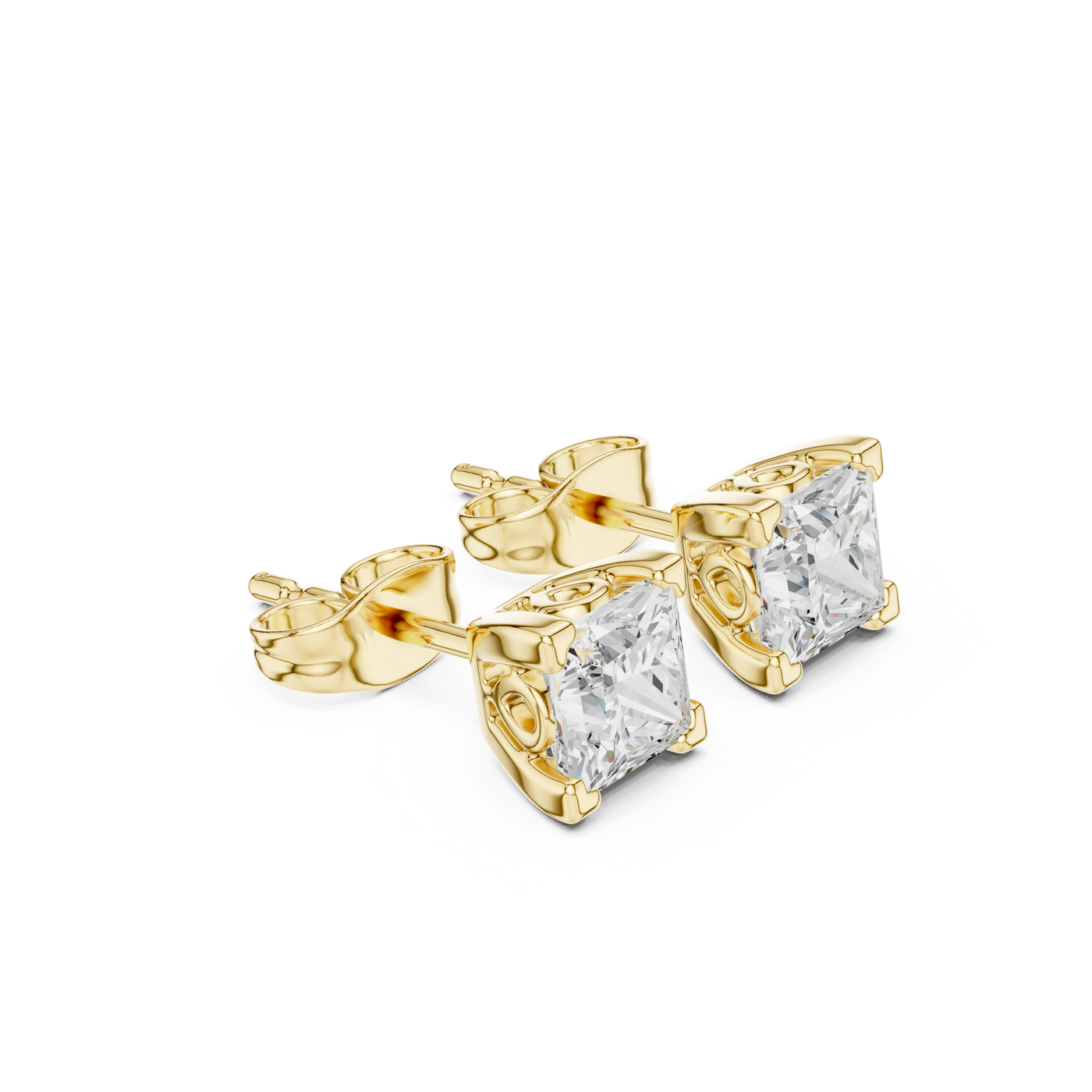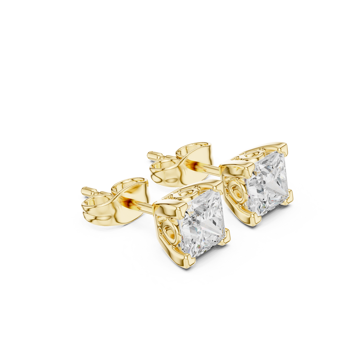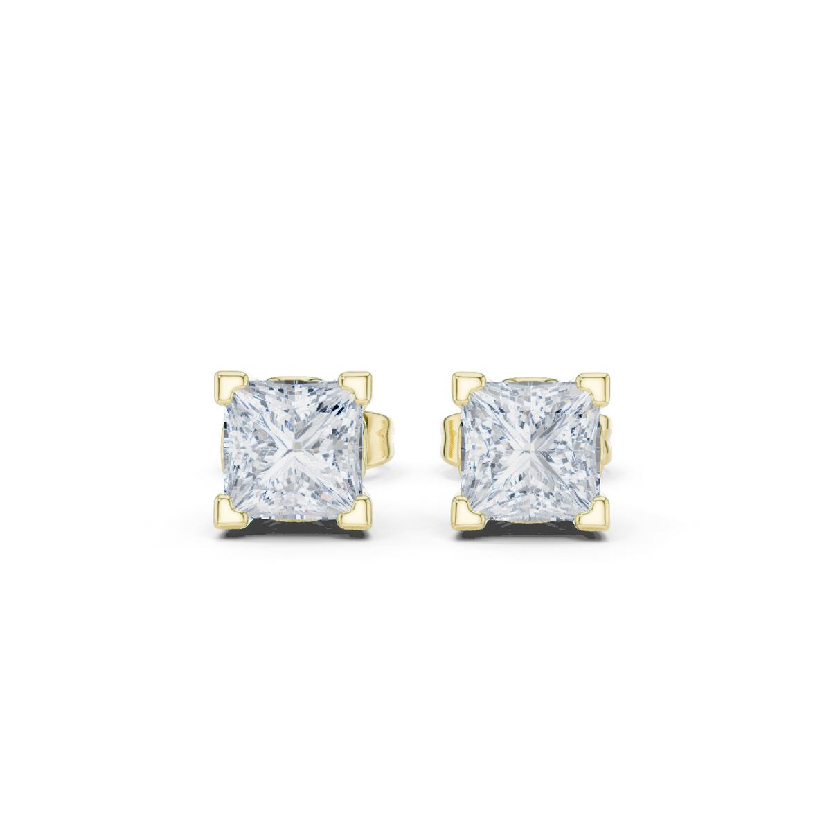 0.75 Carat Natural Princess Diamond Studs – H Color, VS2 Clarity - 14KT Gold / Yellow Gold