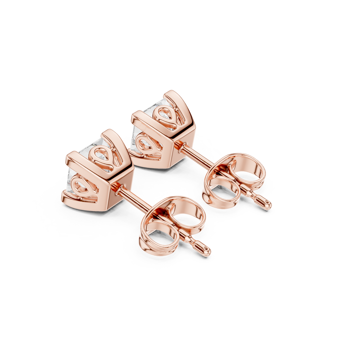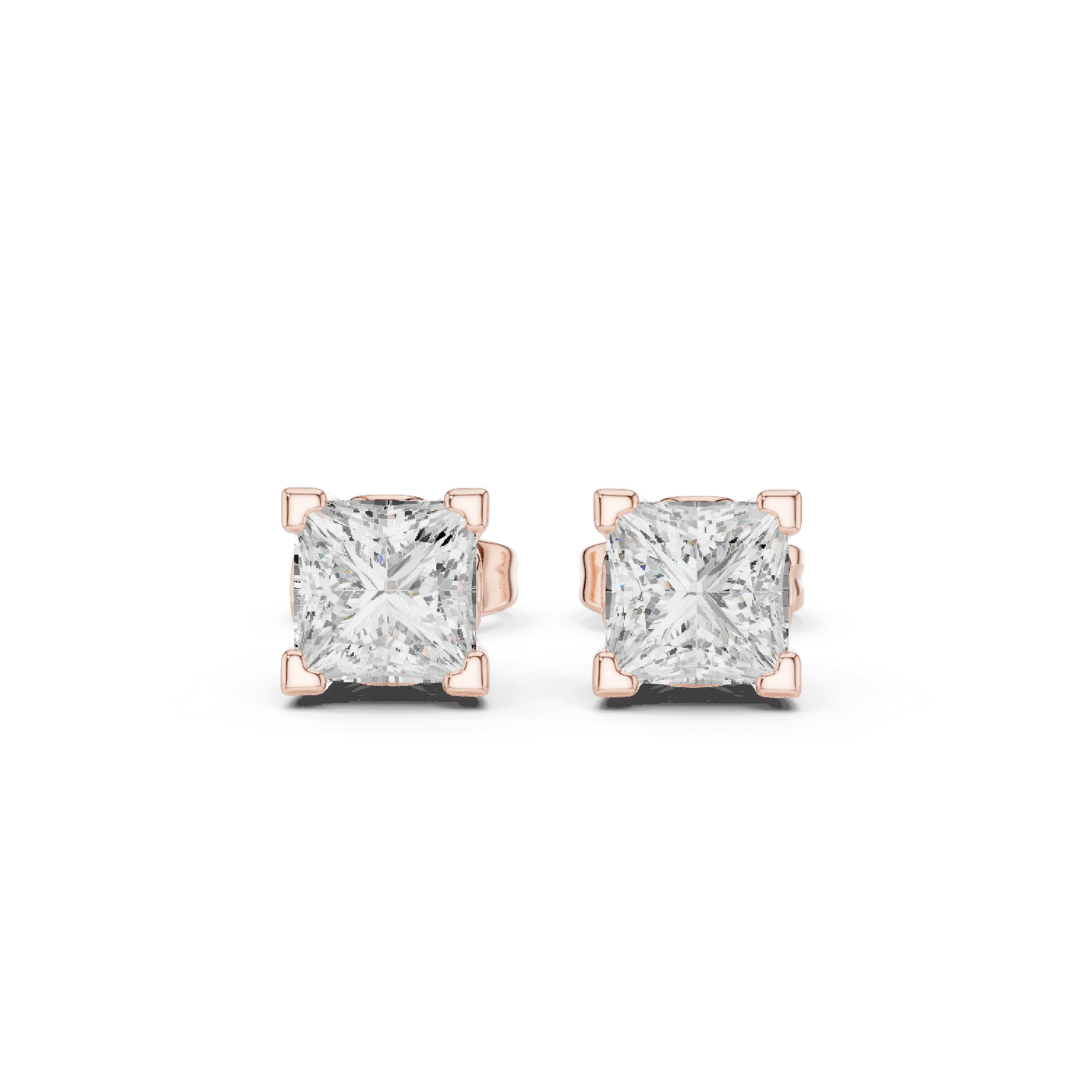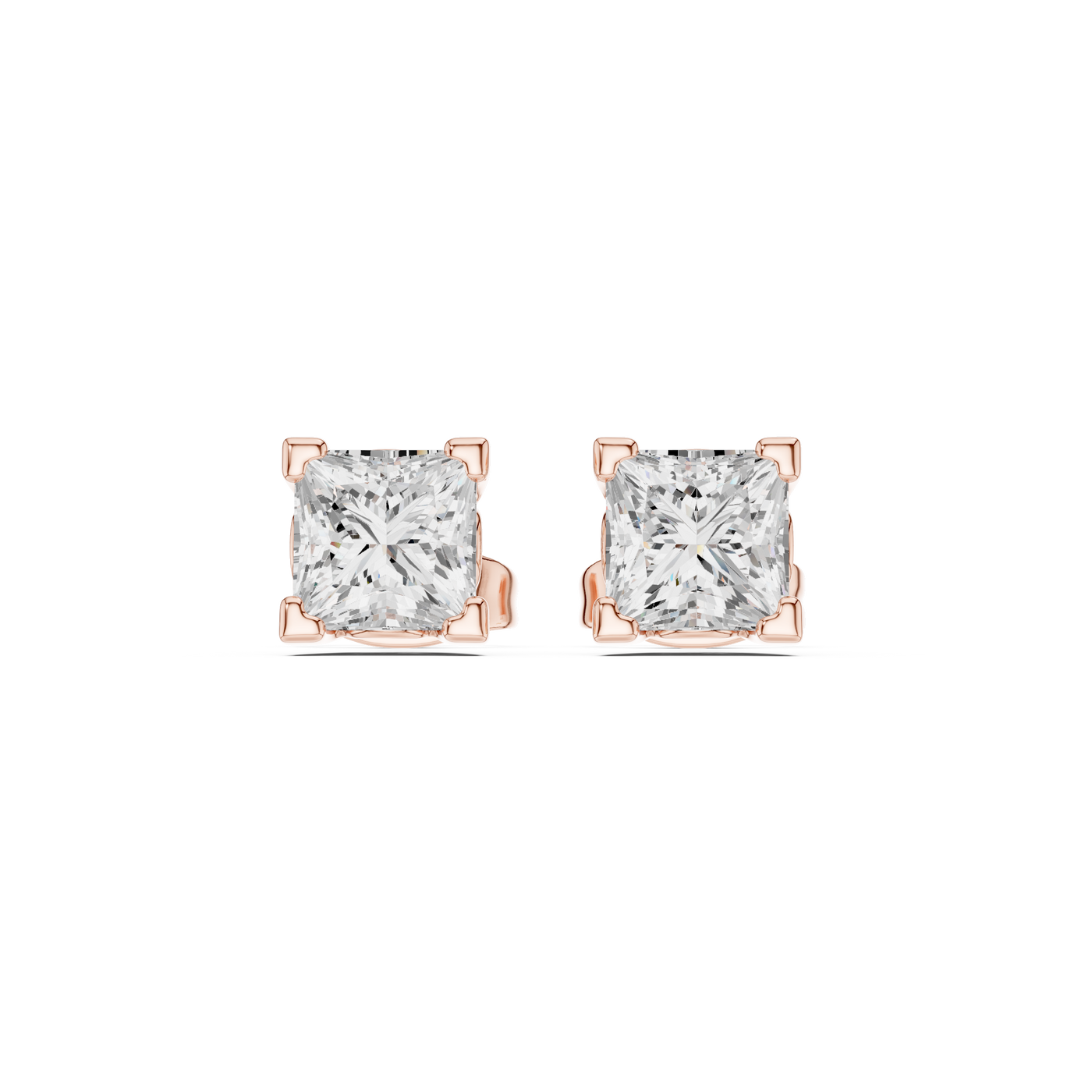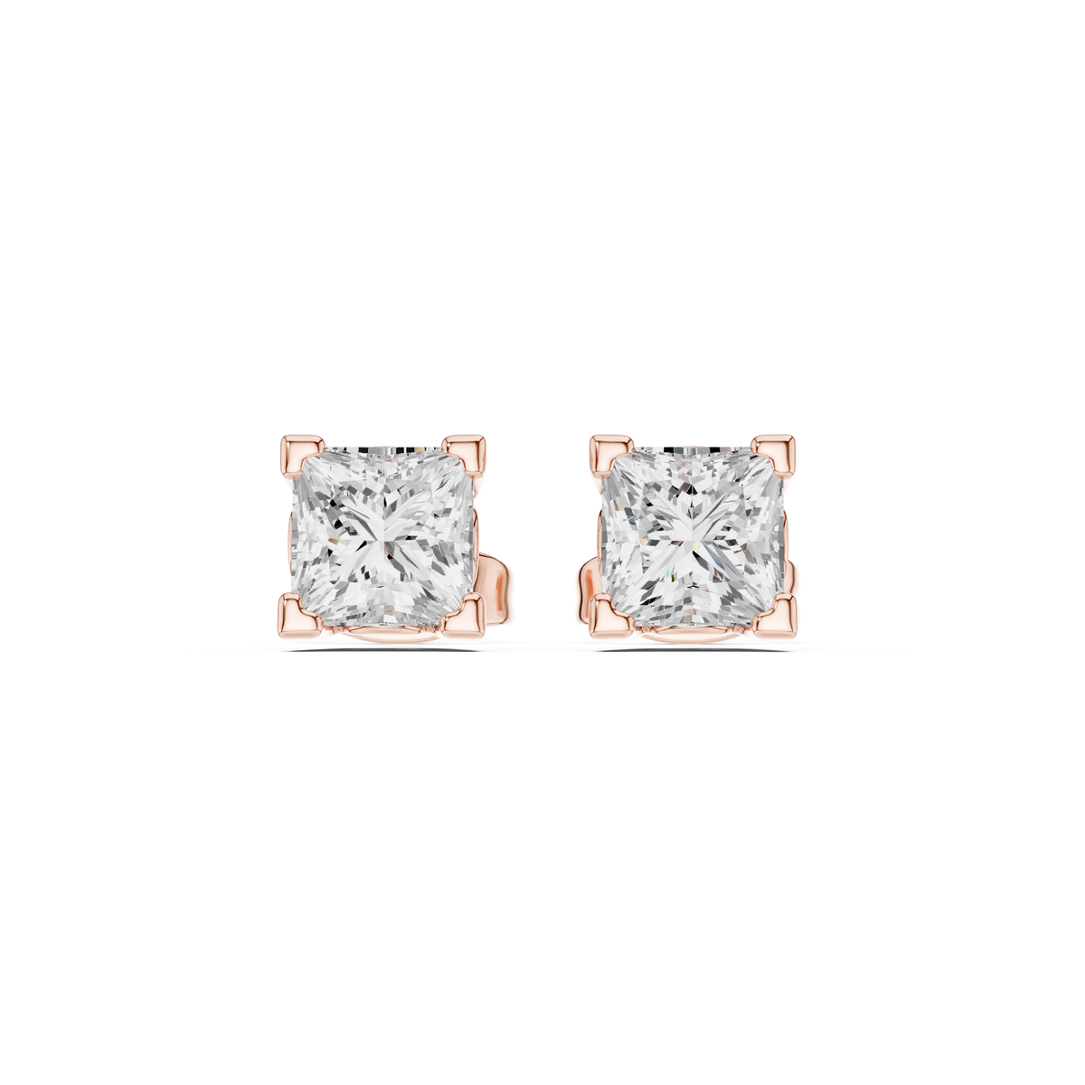 0.75 Carat Natural Princess Diamond Studs – H Color, VS2 Clarity - 14KT Gold / Yellow Gold