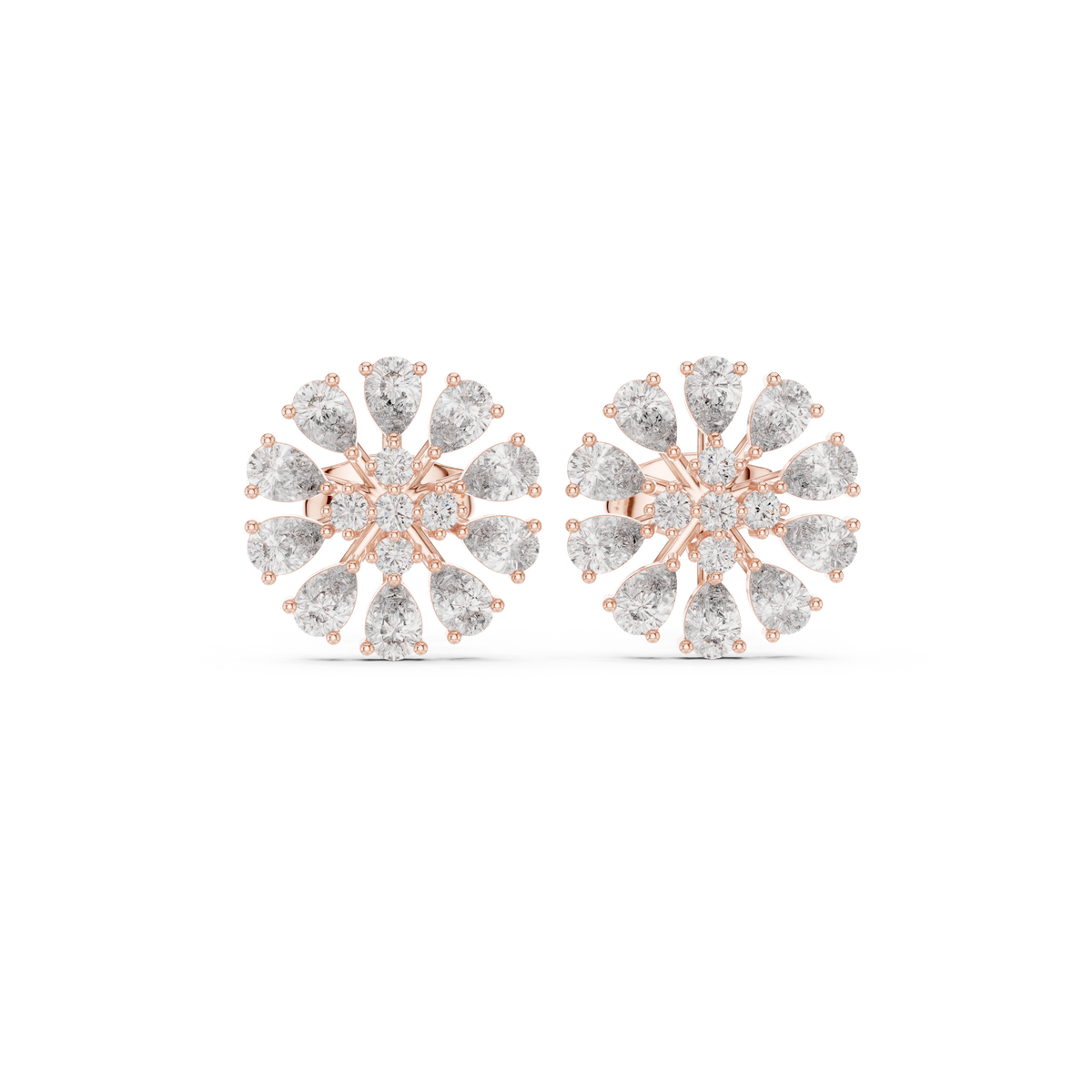 0.95 Carat Pear & Round Natural Diamond Stud Earrings – GH Color, SI Clarity - 14KT Gold / Yellow Gold
