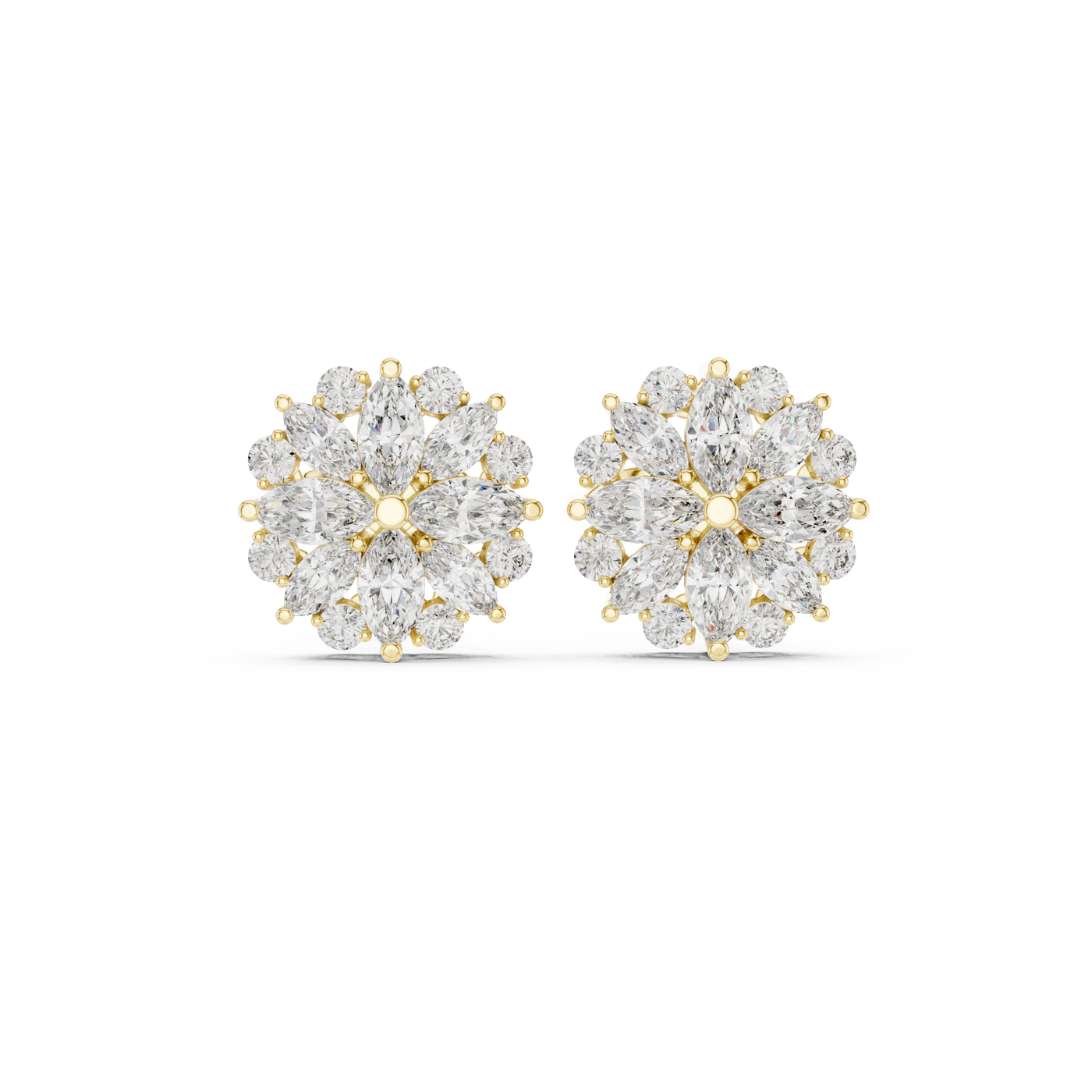 1.64 Carat Natural Diamond Dual-Shape Stud Earrings – GH Color, VS Clarity - 14KT Gold / Yellow Gold