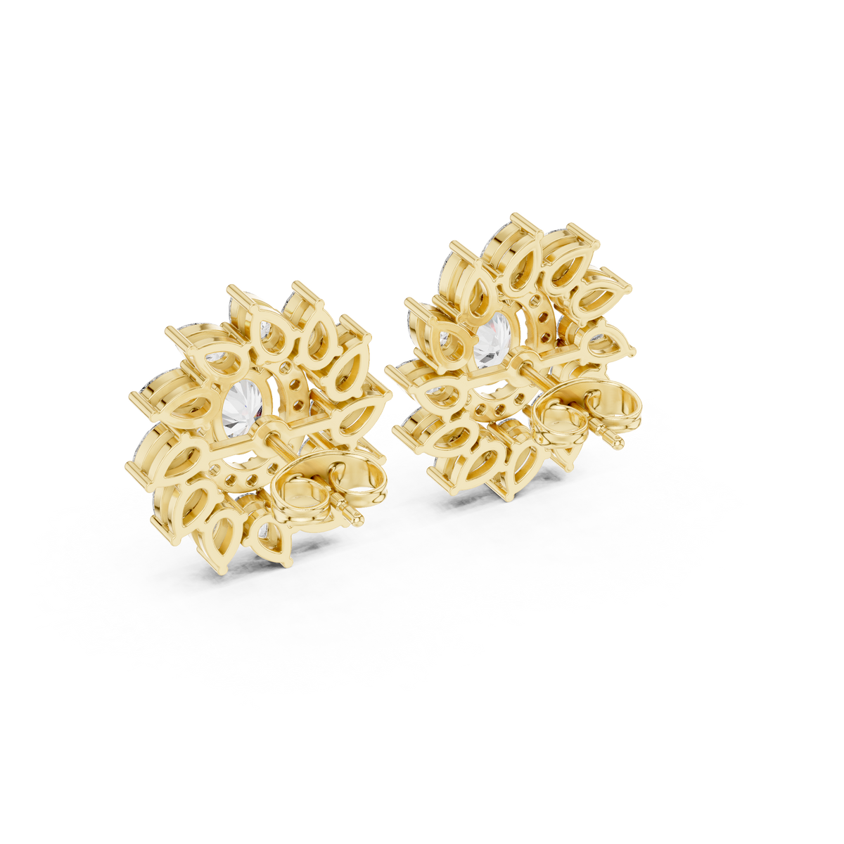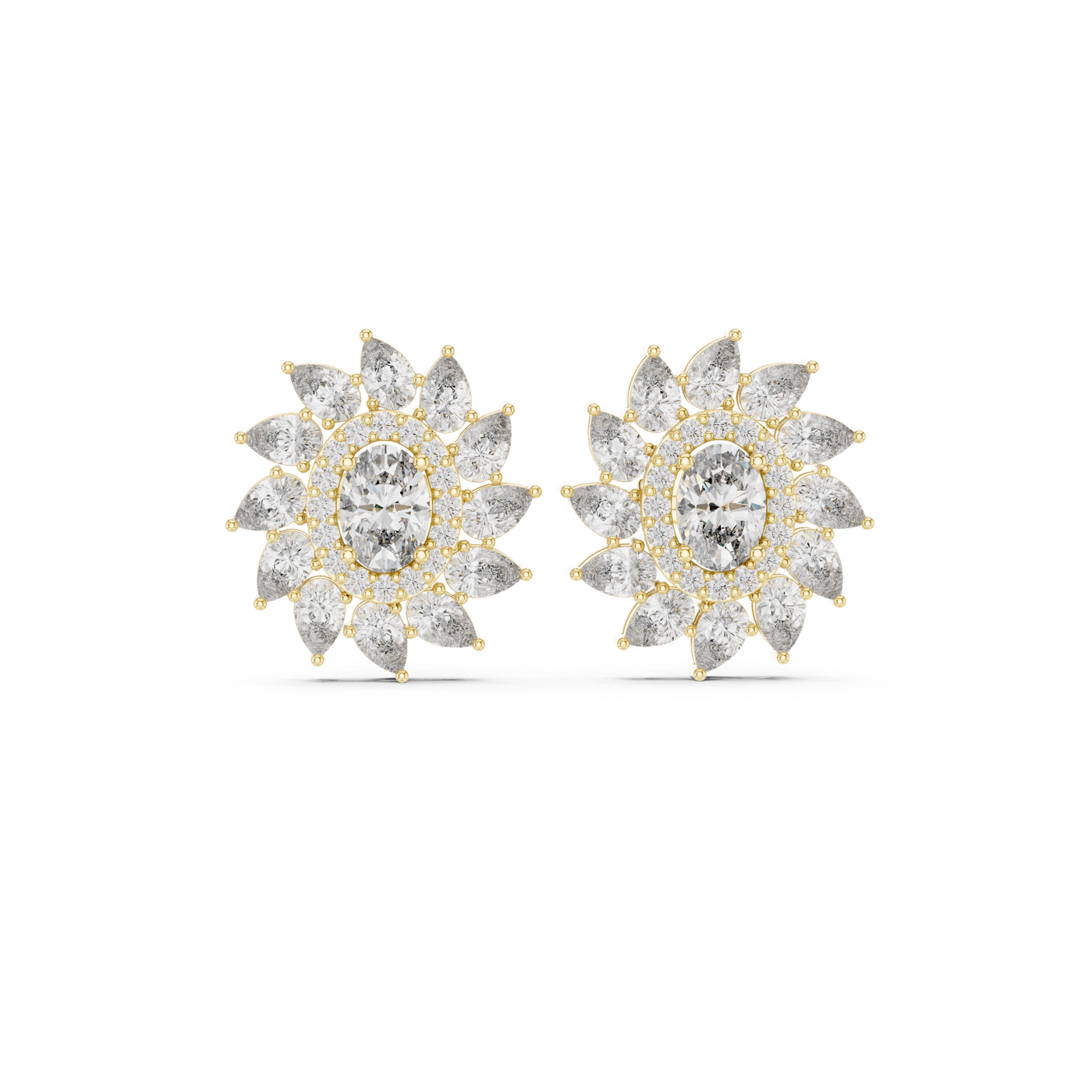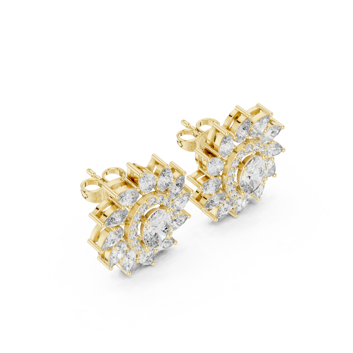 3.39ct Natural Diamond Stud Earrings – Multi-Shape, H Color, VS2 Clarity - 14KT Gold / Yellow Gold