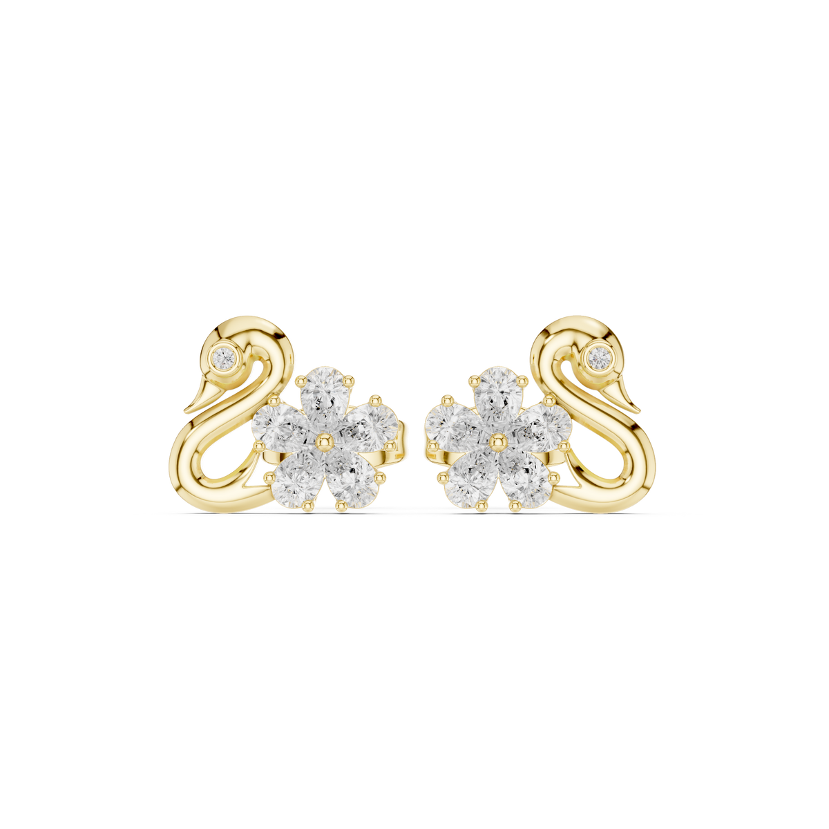 Swan Design 1.313ct Natural Diamond Stud Earrings – GH Color, SI Clarity - 14KT Gold / Yellow Gold