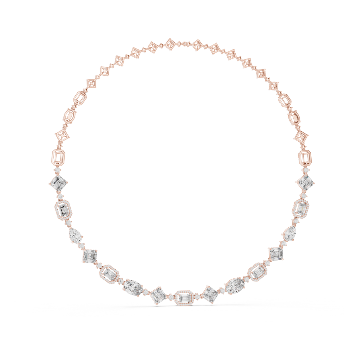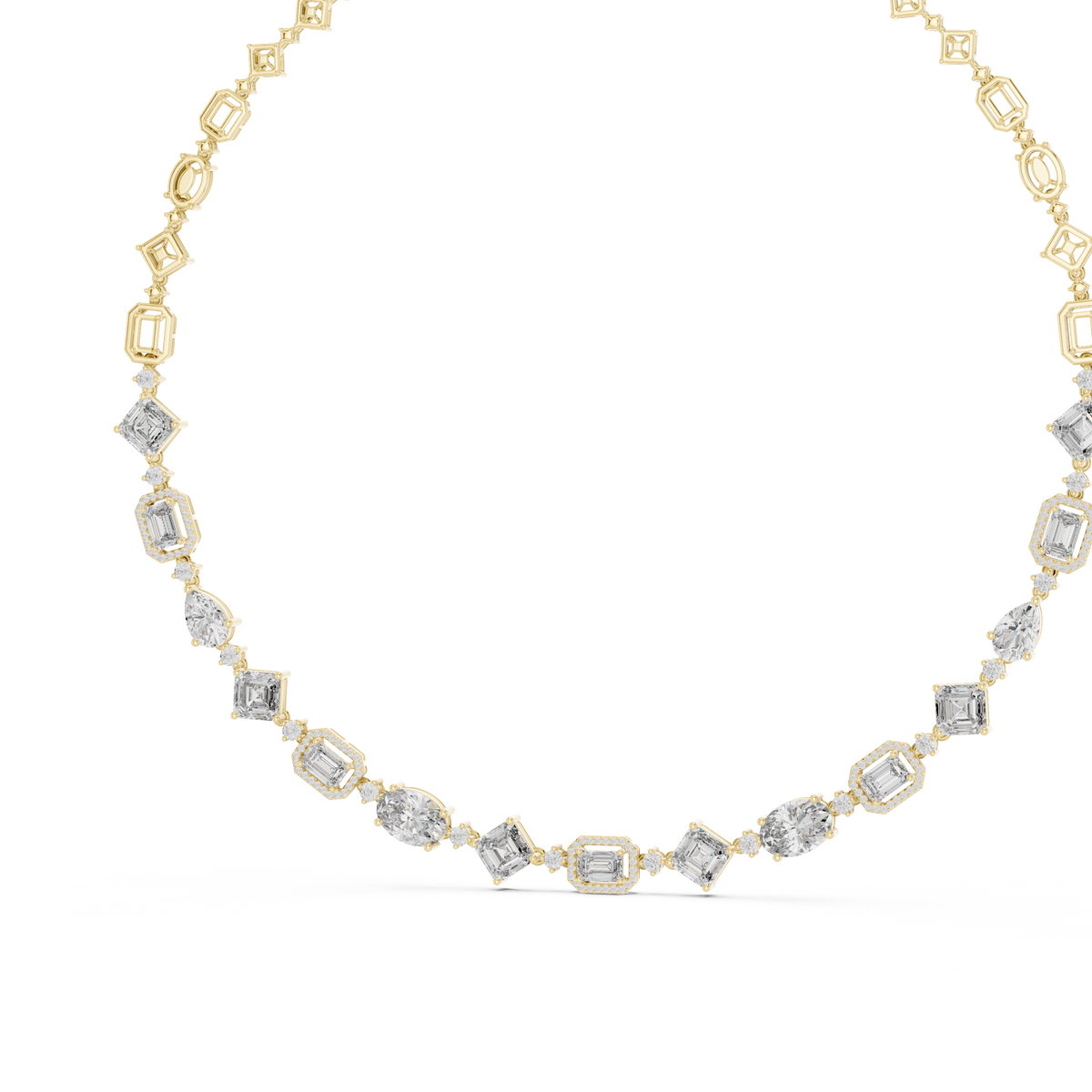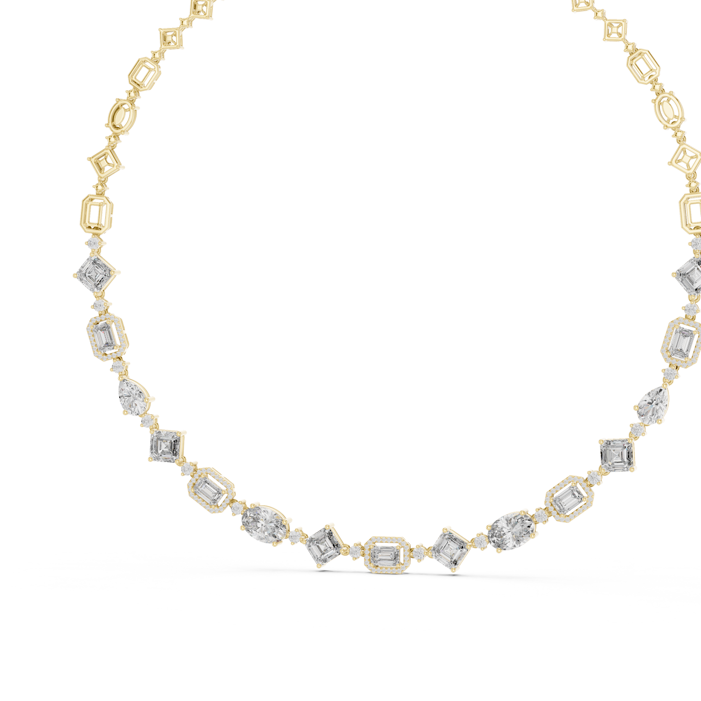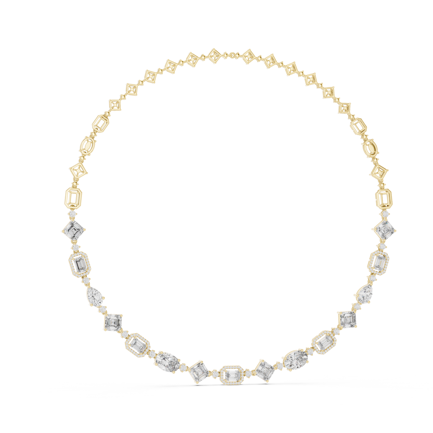 18.6 Ct Natural Diamond Multi-Shape Tennis Necklace - 14KT Gold / 16 Inch / Yellow Gold