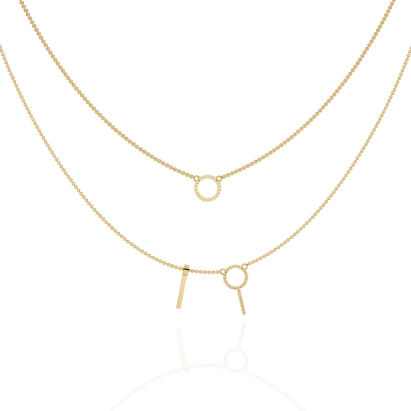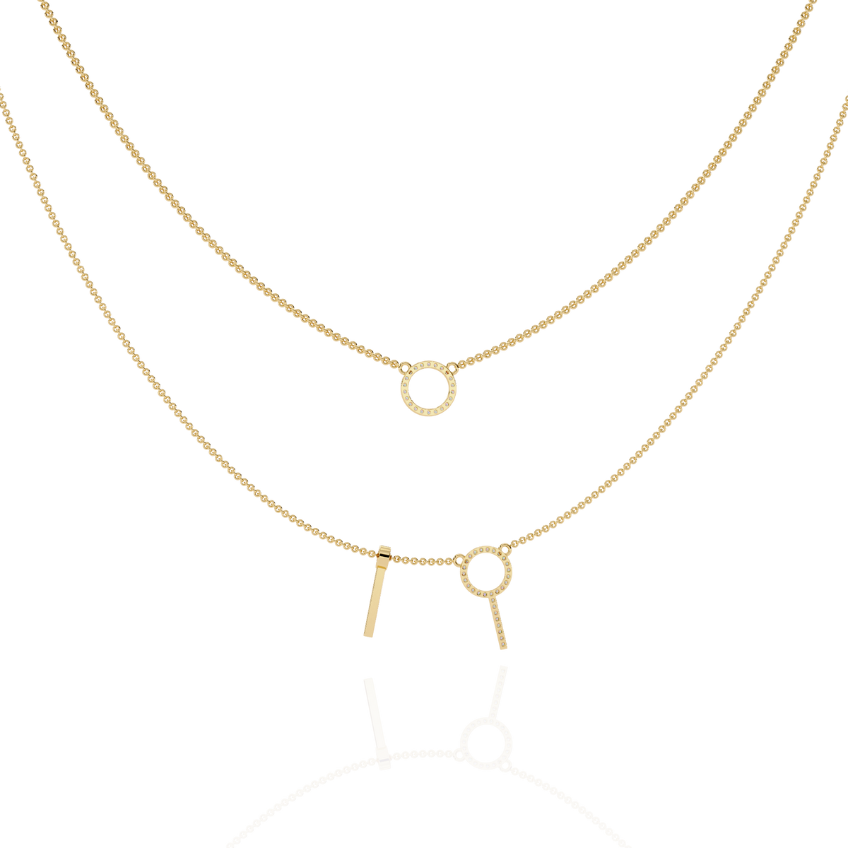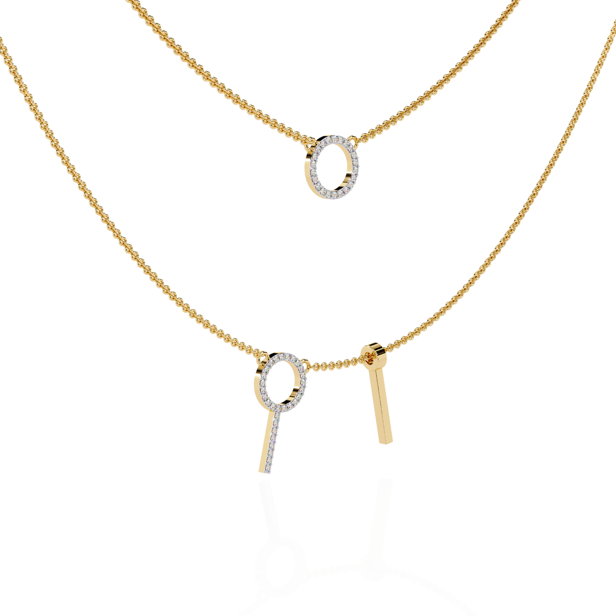 Solitairekart 0.29ct Lab Grown Diamond Orbit and Bar Layered Necklace - 14KT Gold / 16 Inch / Yellow Gold