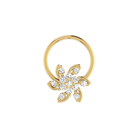 14K Gold Dancing Petals 0.06ct Natural Diamond Nose Pin - 14KT Gold / Yellow Gold