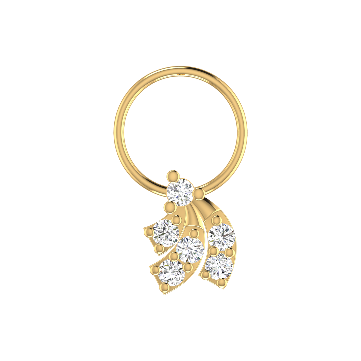 14K Gold Cluster & Floral Design 0.12ct Natural Diamond Nose Pin - 14KT Gold / Yellow Gold