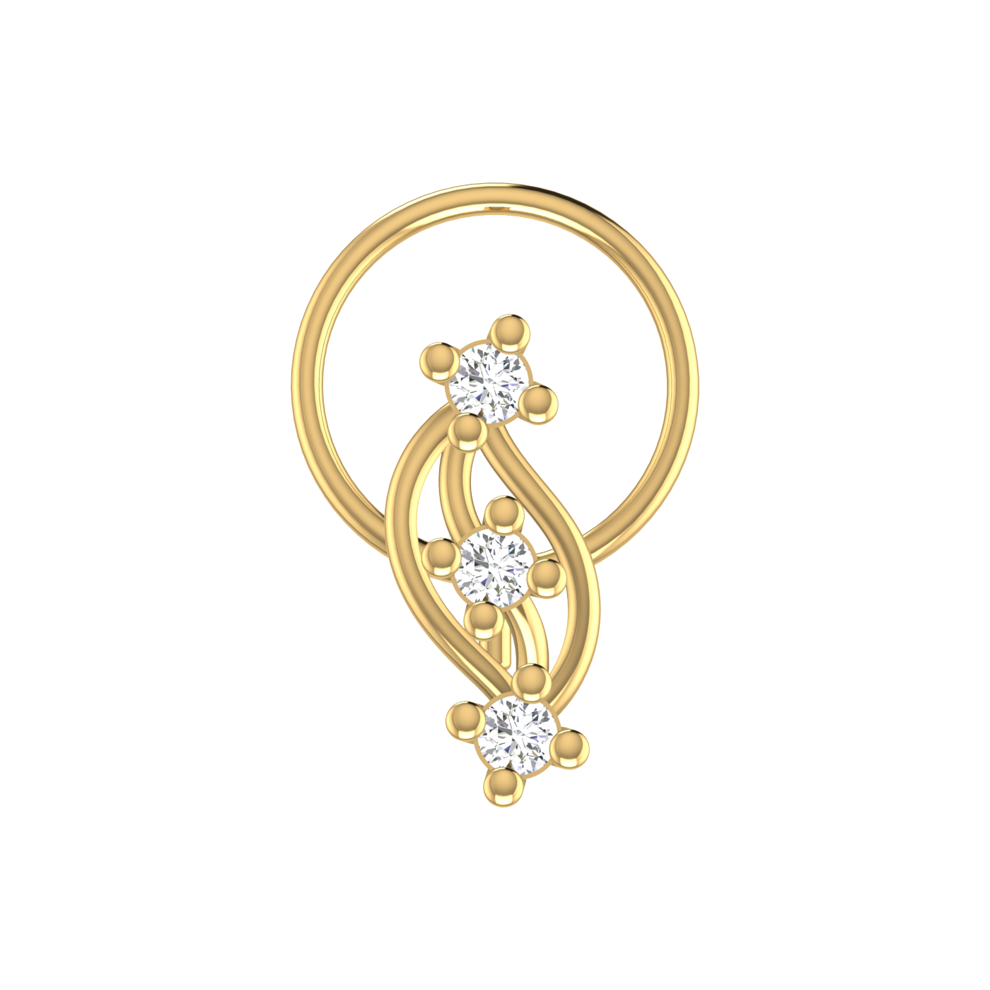 14K Gold Ethereal Swirl Design 0.06 ct Natural Diamond Nose Pin - 14KT Gold / Yellow Gold