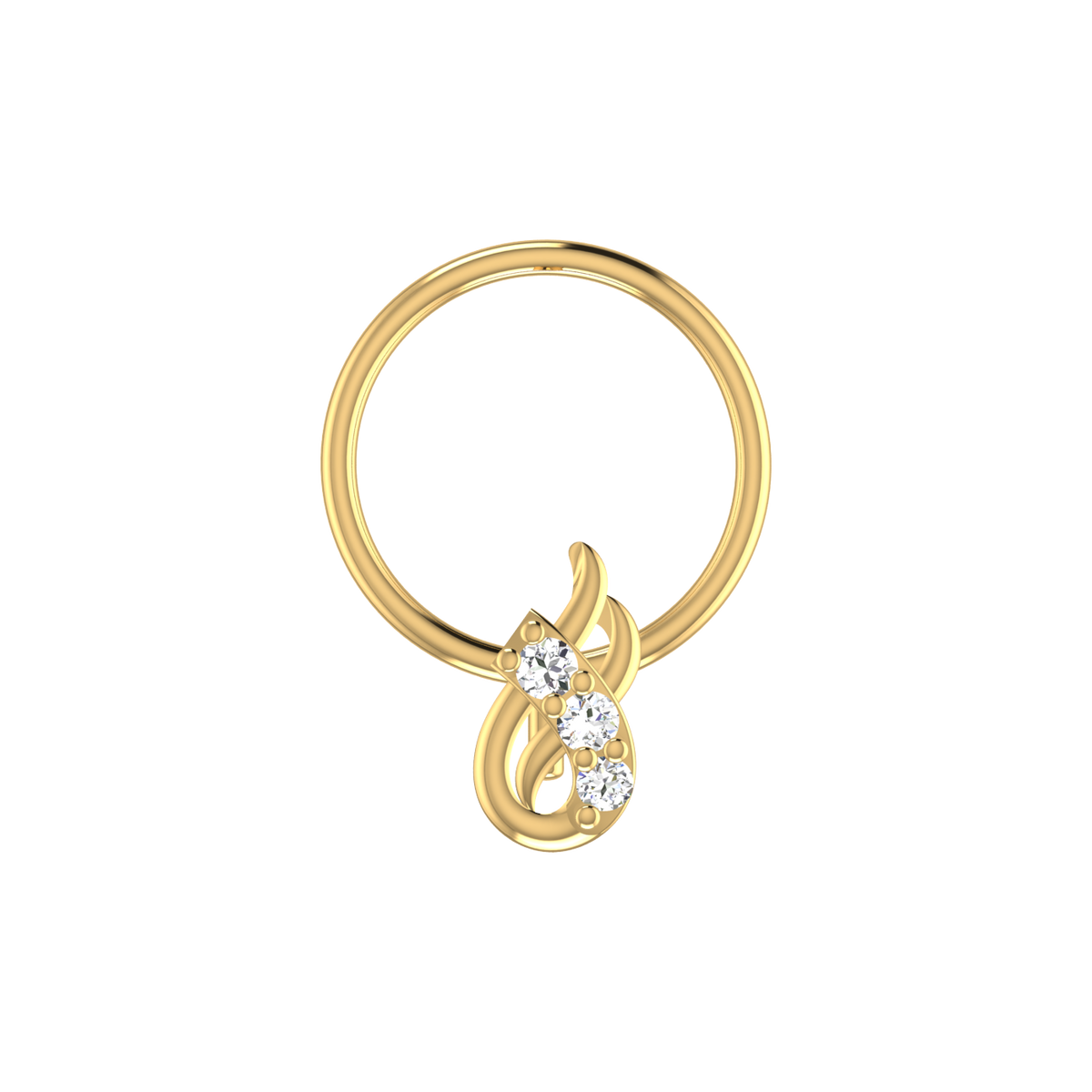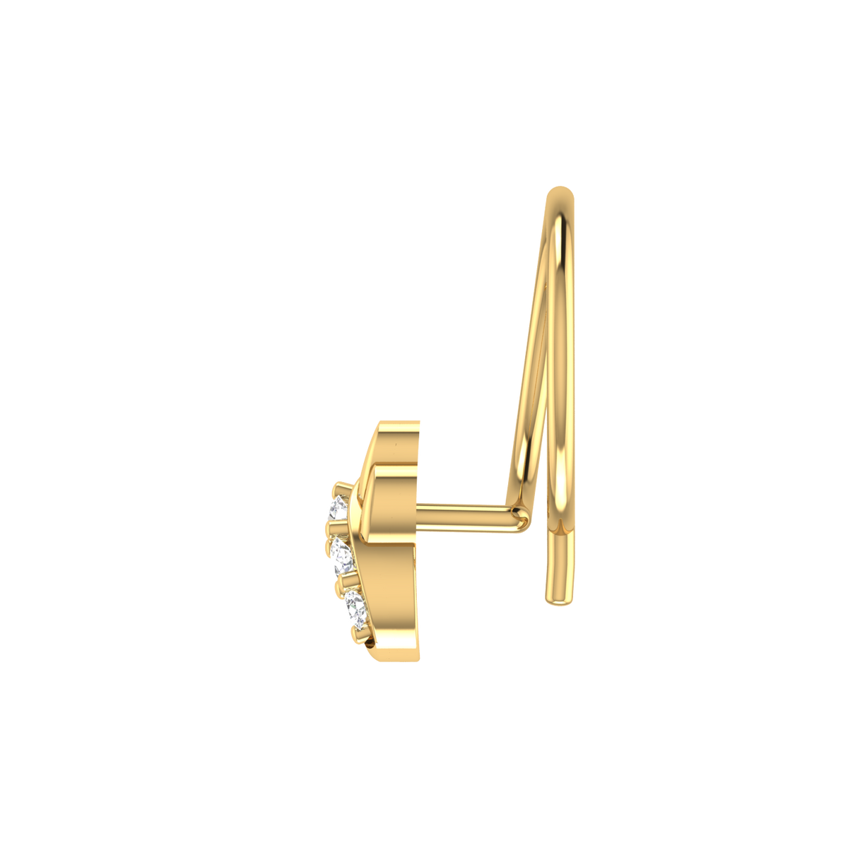 14K Gold Curved or Looped Design 0.022ct Natural Diamond Nose Pin - 14KT Gold / Yellow Gold