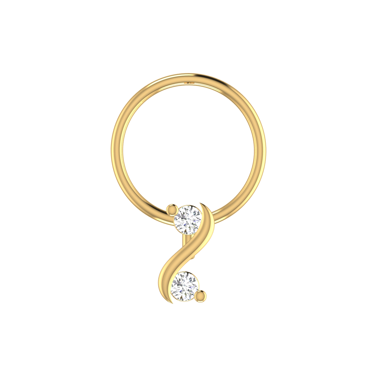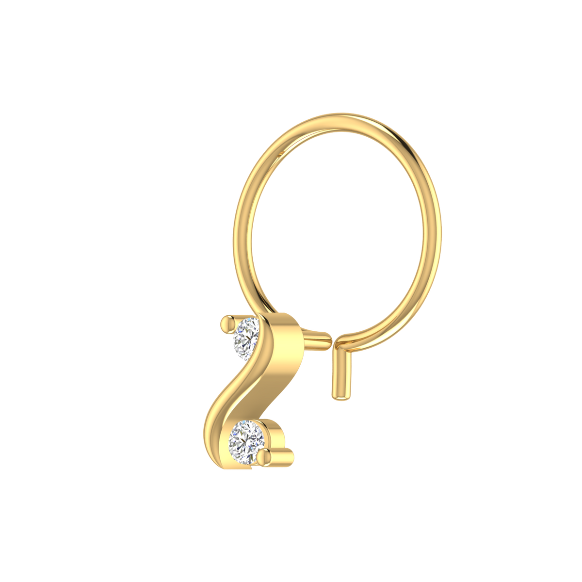14K Gold Twist of Elegance Design 0.042ct Natural Diamond Nose Pin - 14KT Gold / Yellow Gold