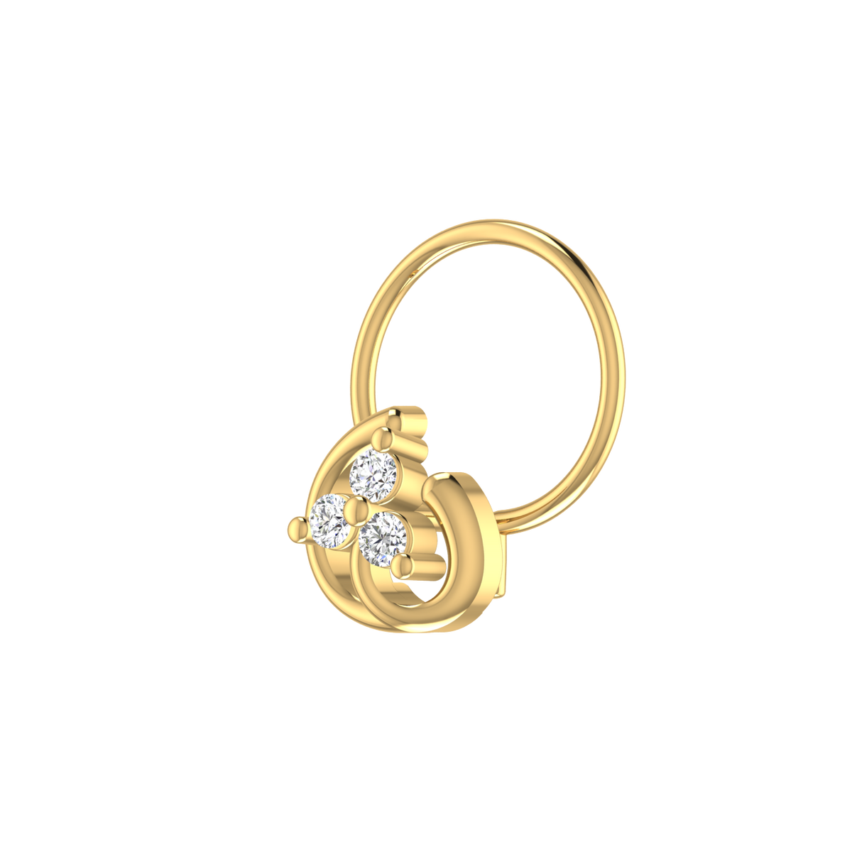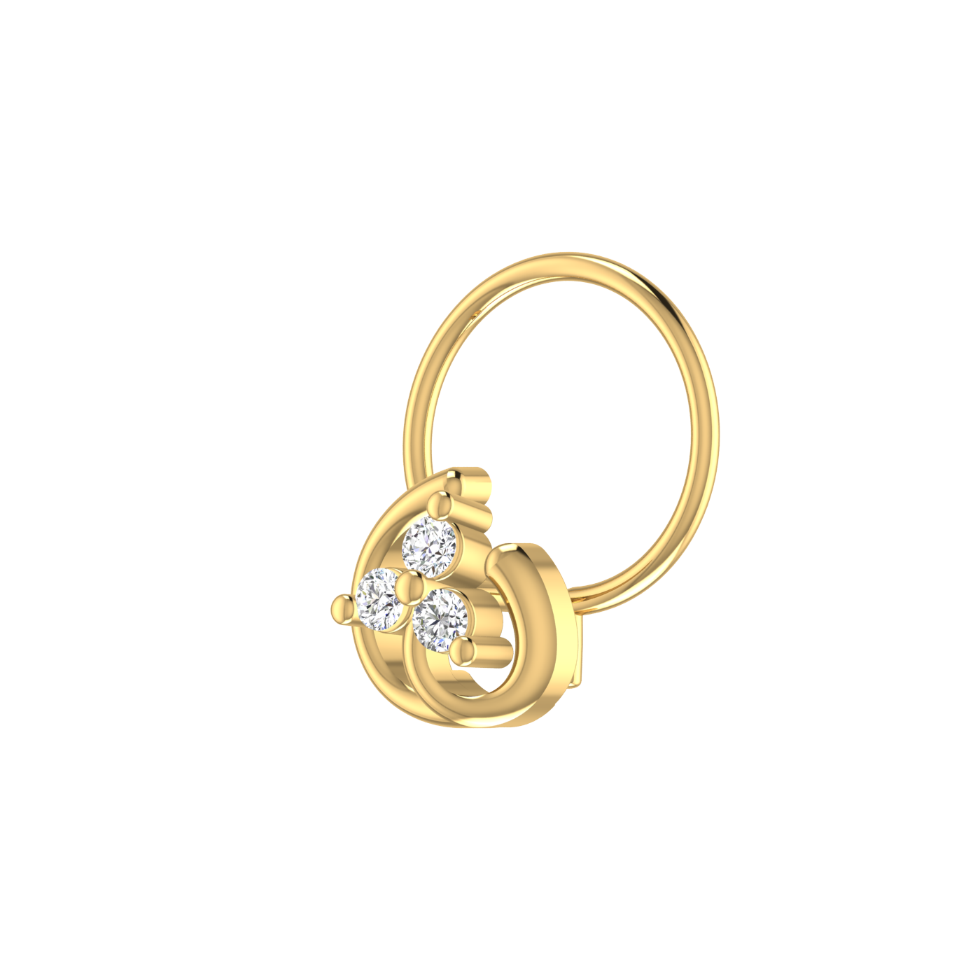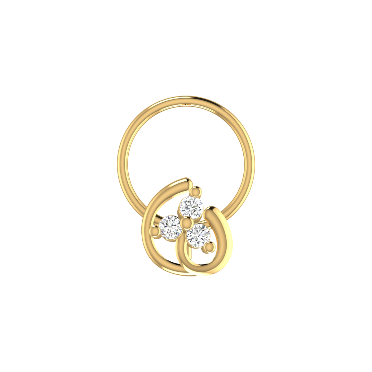 14K Gold Infinity Bloom Design 0.054ct Natural Diamond Nose Pin - 14KT Gold / Yellow Gold