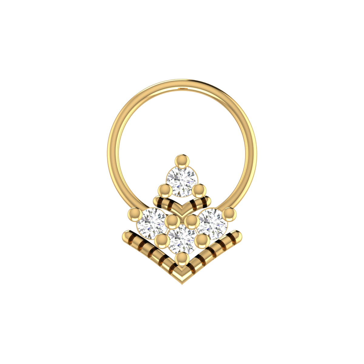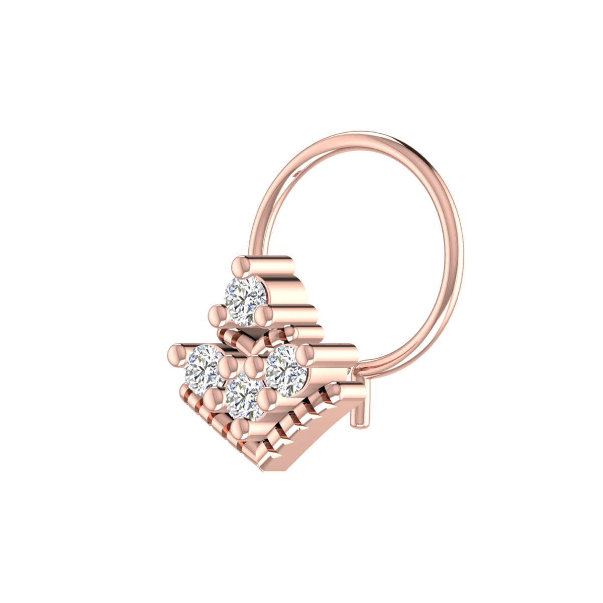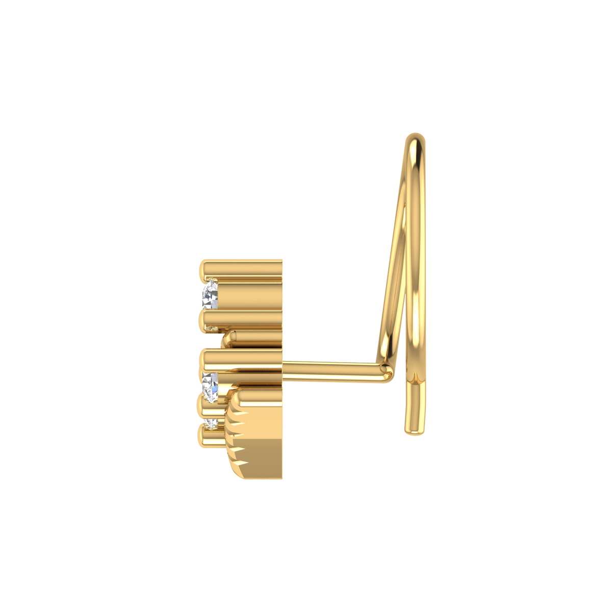 14K Gold Geometric Floral Pyramid Design 0.08ct Natural Diamond Nose Pin - 14KT Gold / Yellow Gold