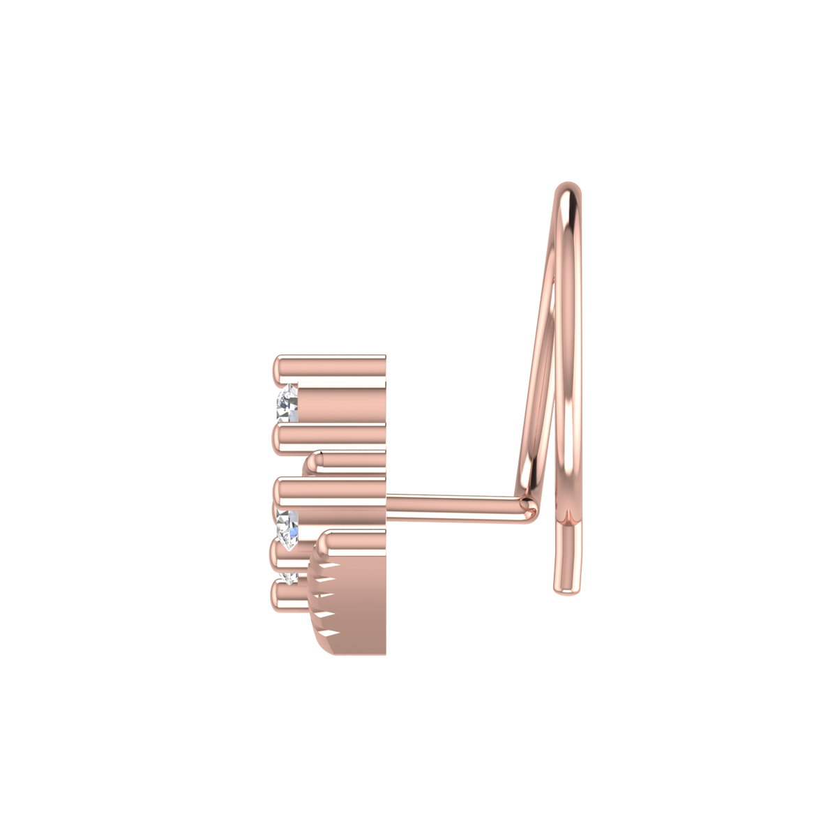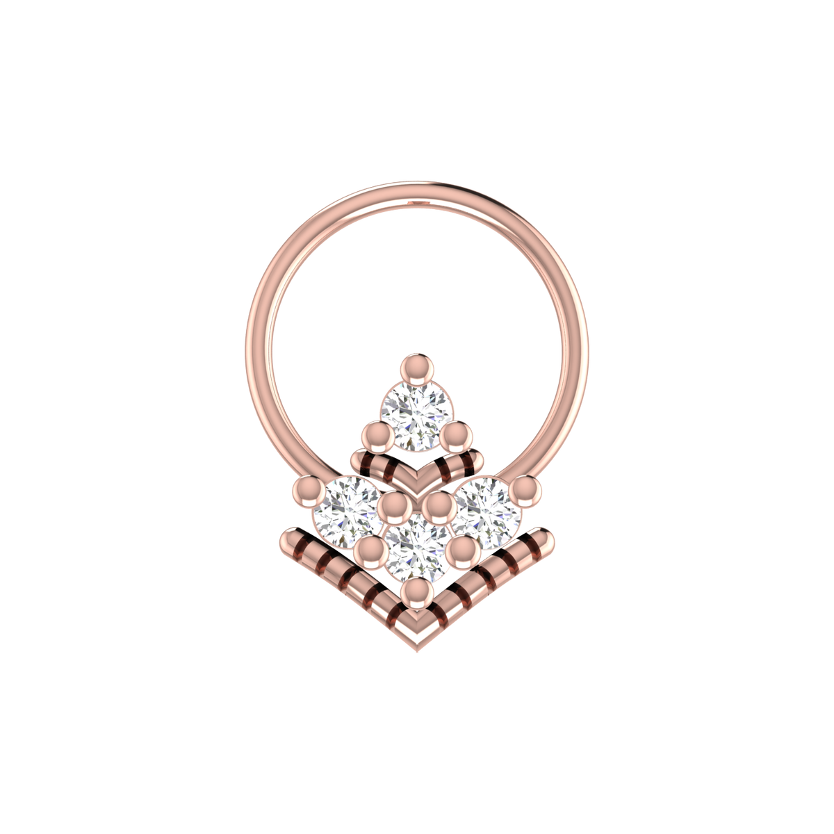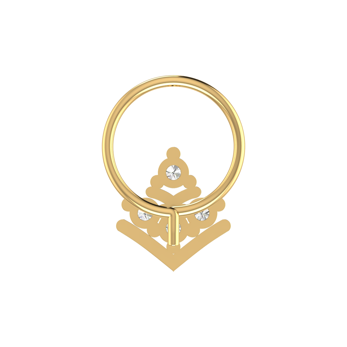 14K Gold Geometric Floral Pyramid Design 0.08ct Natural Diamond Nose Pin - 14KT Gold / Yellow Gold