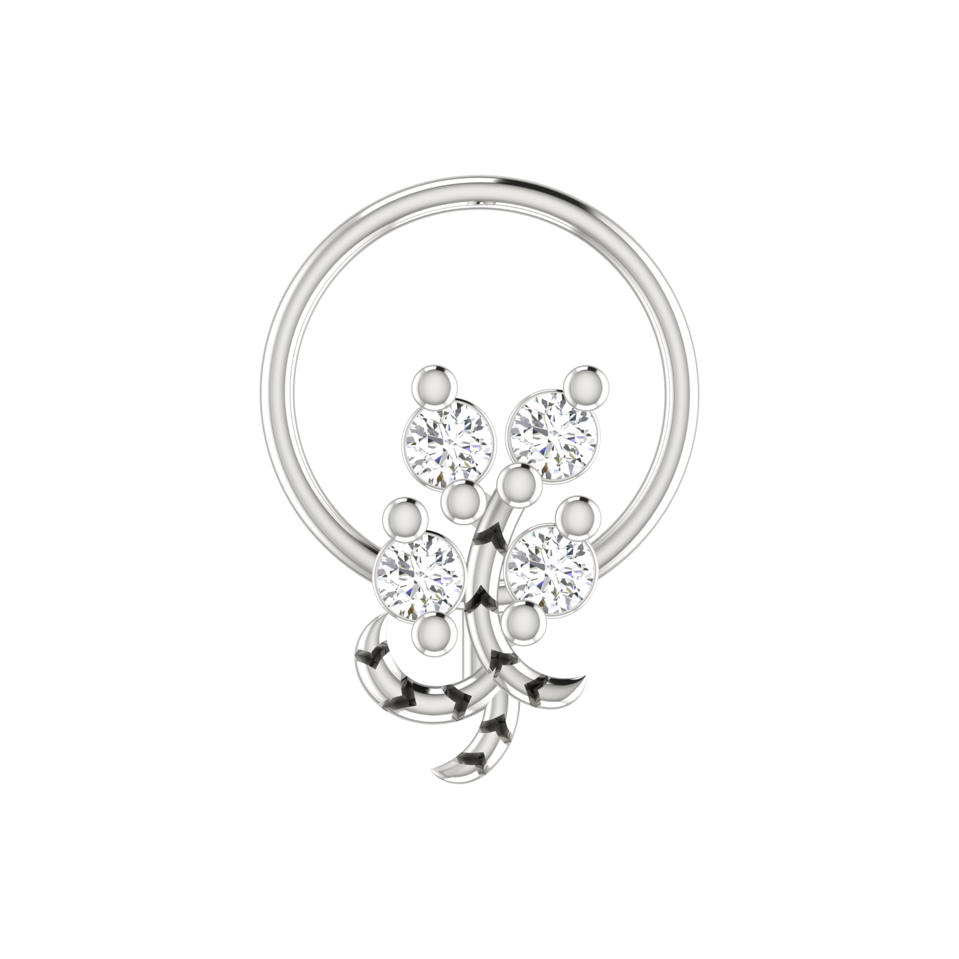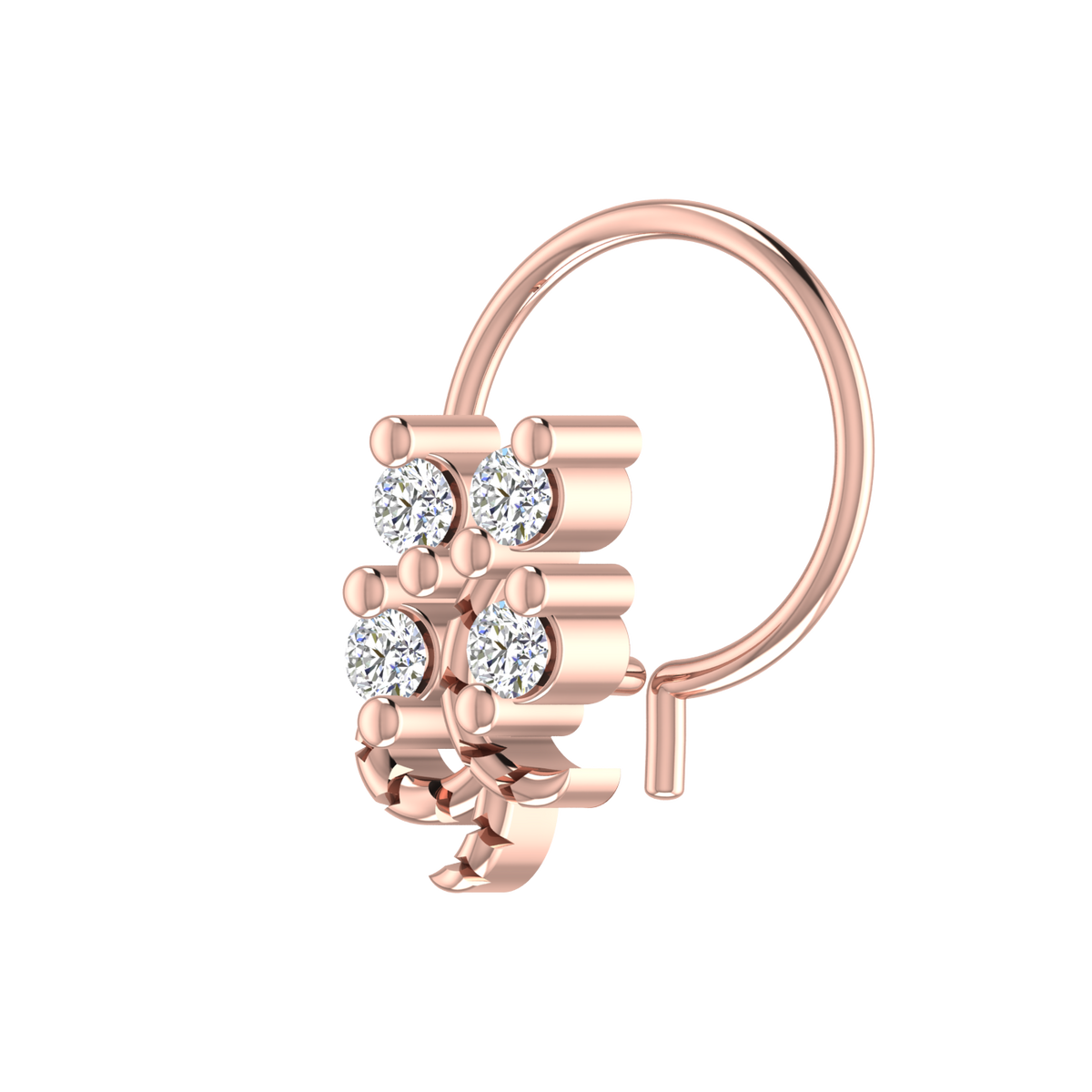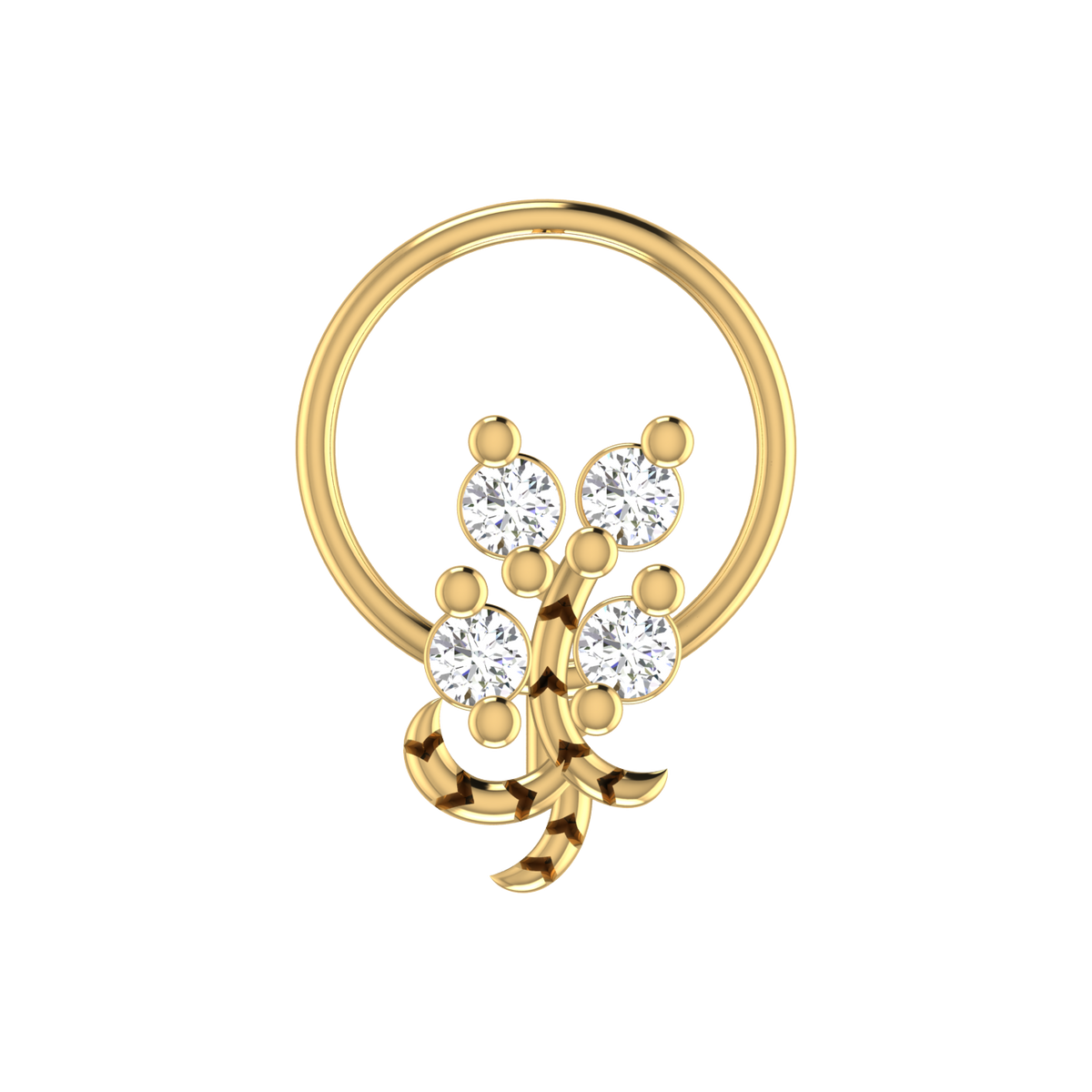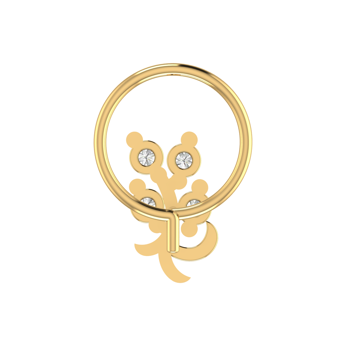 14K Gold Floral Vine-Inspired Design 0.08ct Natural Diamond Nose Pin - 14KT Gold / Yellow Gold