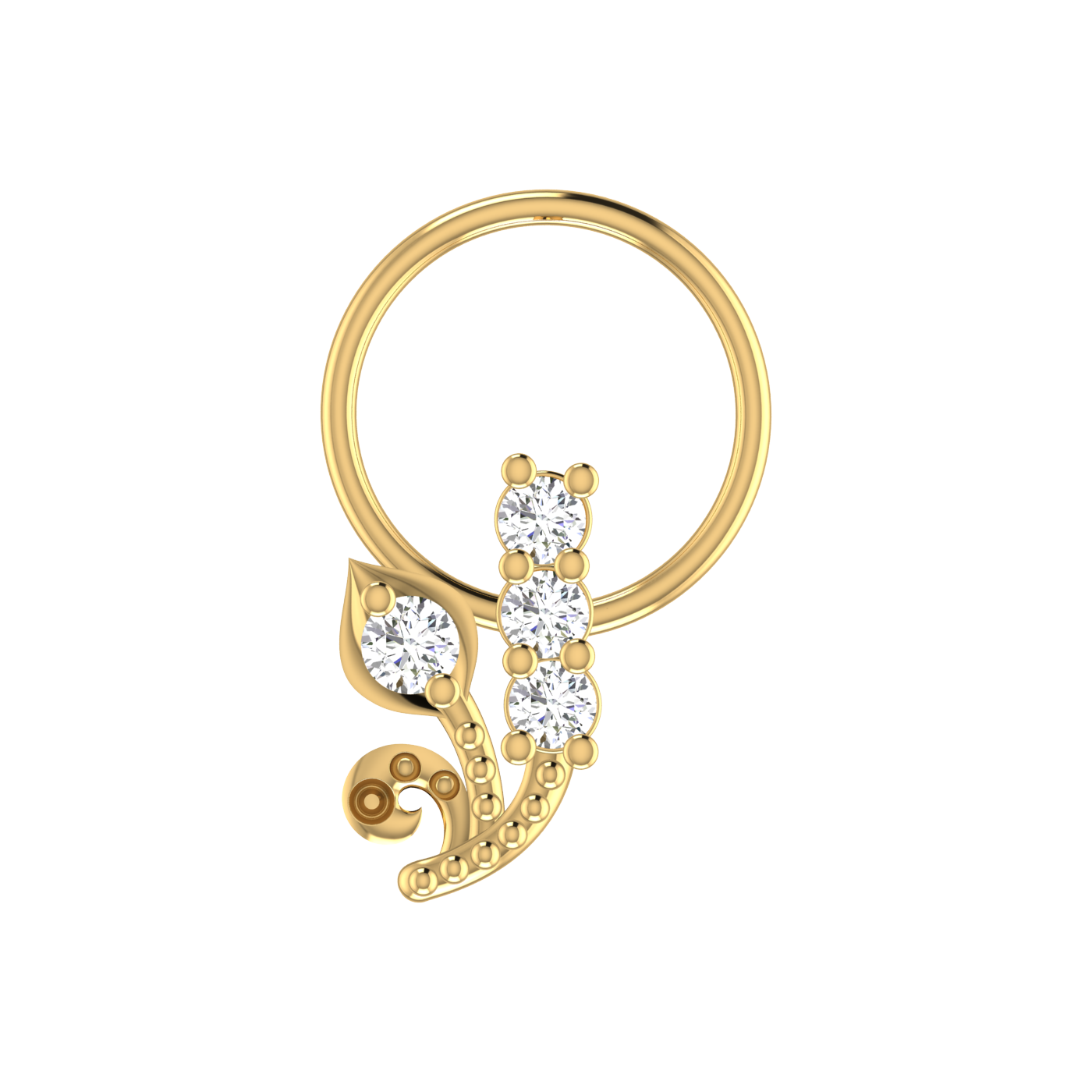14K Gold Ornate Floral and Vine Design 0.08ct Natural Diamond Nose Pin. - 14KT Gold / Yellow Gold