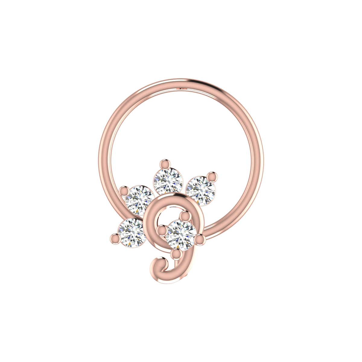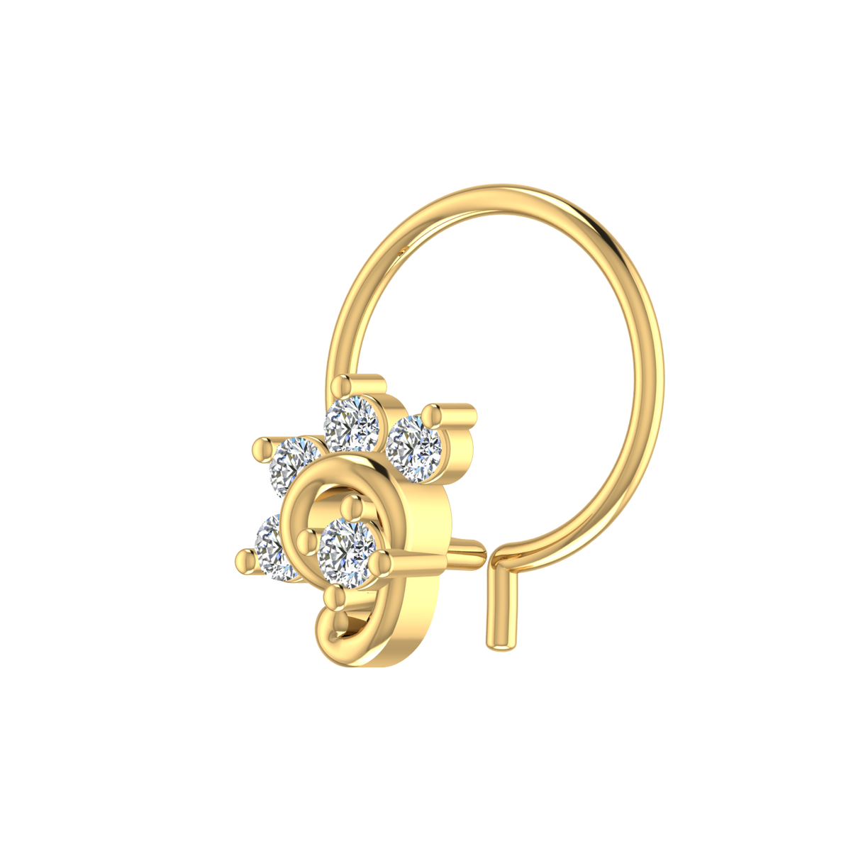 14K Gold Celestial Swirl Design 0.1ct Natural Diamond Nose Pin - 14KT Gold / Yellow Gold