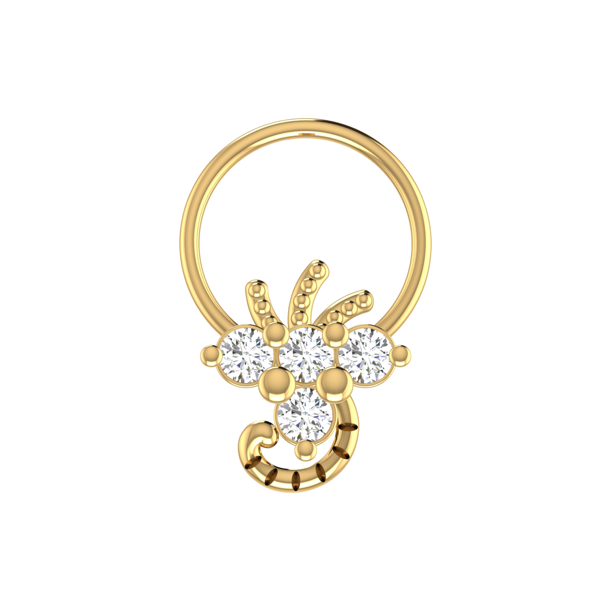 14K Gold Floral Cluster With Gold Detailing Design 0.12ct Natural Diamond Nose Pin | SOLITAIREKART index