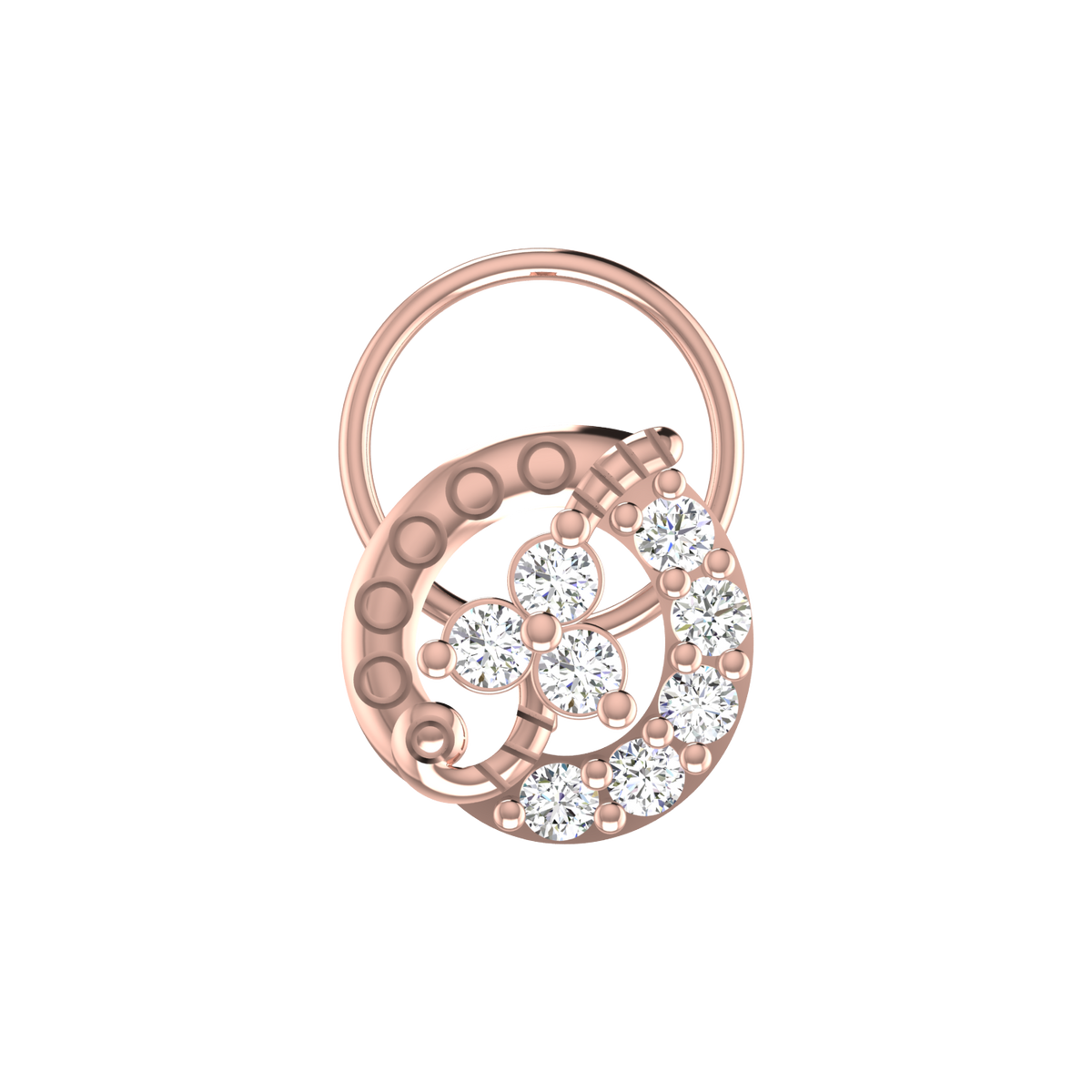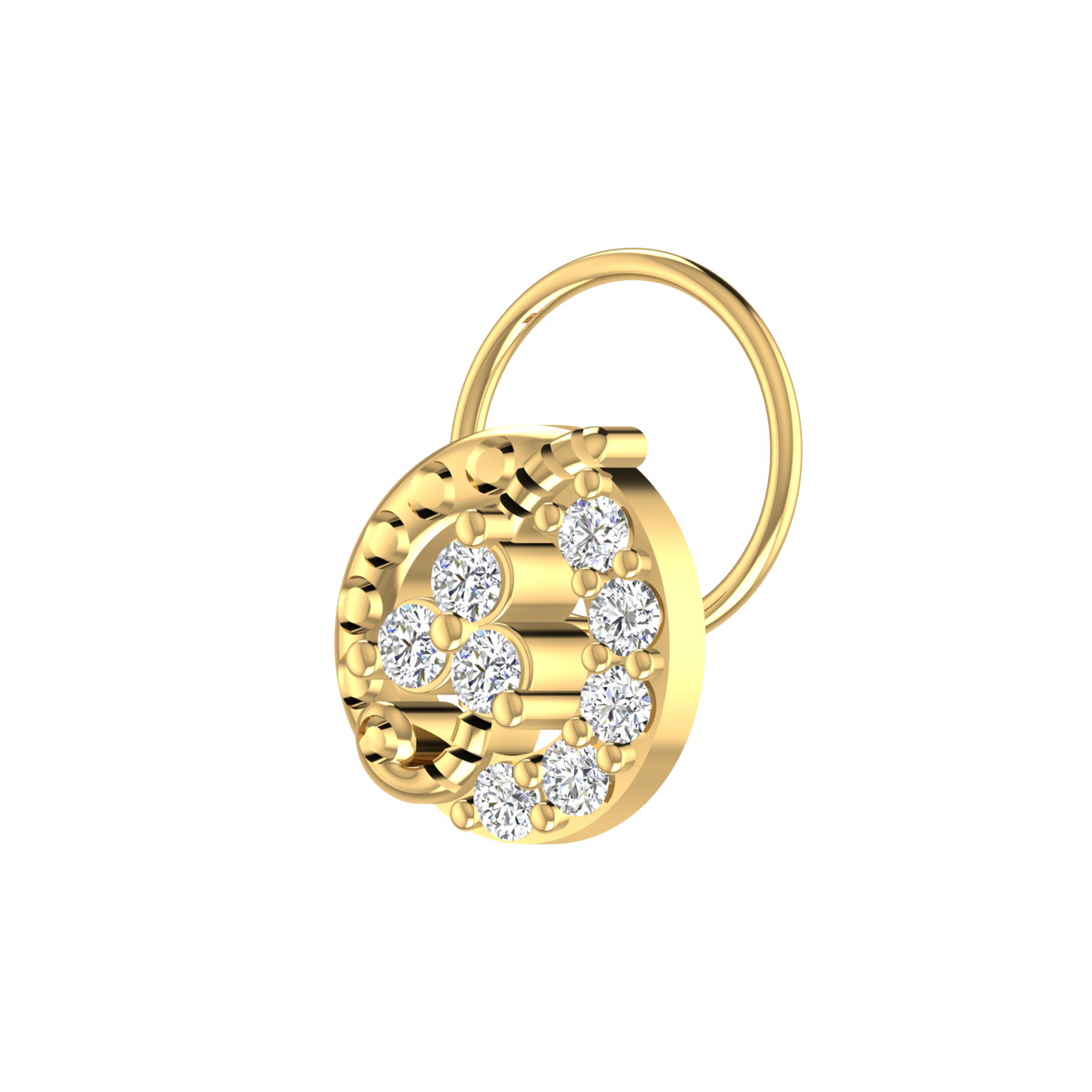 14K Gold Crescent-Shaped Floral Design 0.16 Ct Natural Diamond Nose Pin - 14KT Gold / Yellow Gold