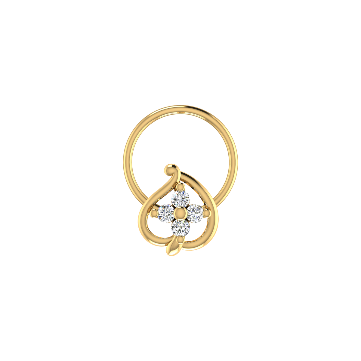 14K Gold Floral Curved Petal Design 0.5ct Natural Diamond Nose Pin - 14KT Gold / Yellow Gold