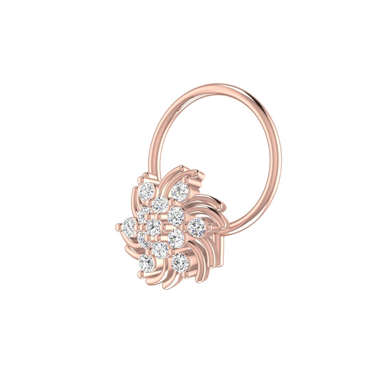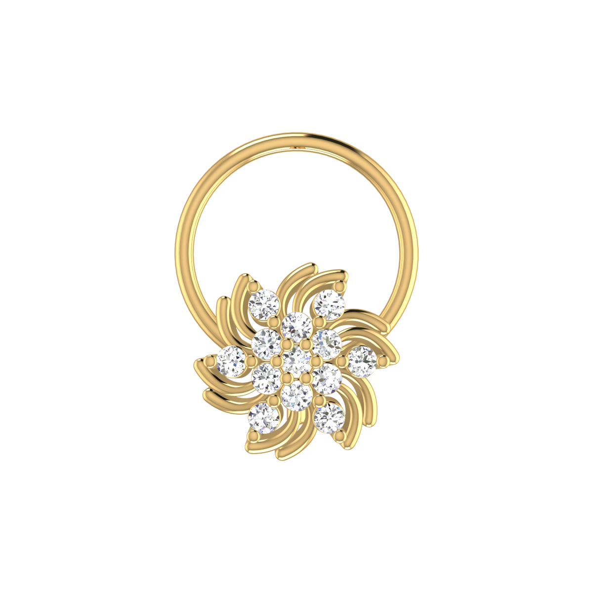 14K Gold Elegant Twilight Bloom 0.06ct Natural Diamond Nose Pin - 14KT Gold / Yellow Gold