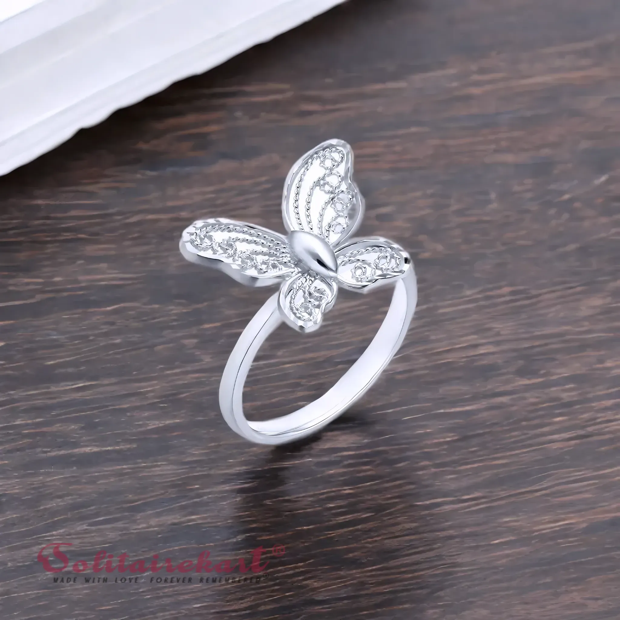 Solitairekart Platinum Butterfly Style Band Ring 3.219gm Weight For Woman - Platinum / 95.0 / 5